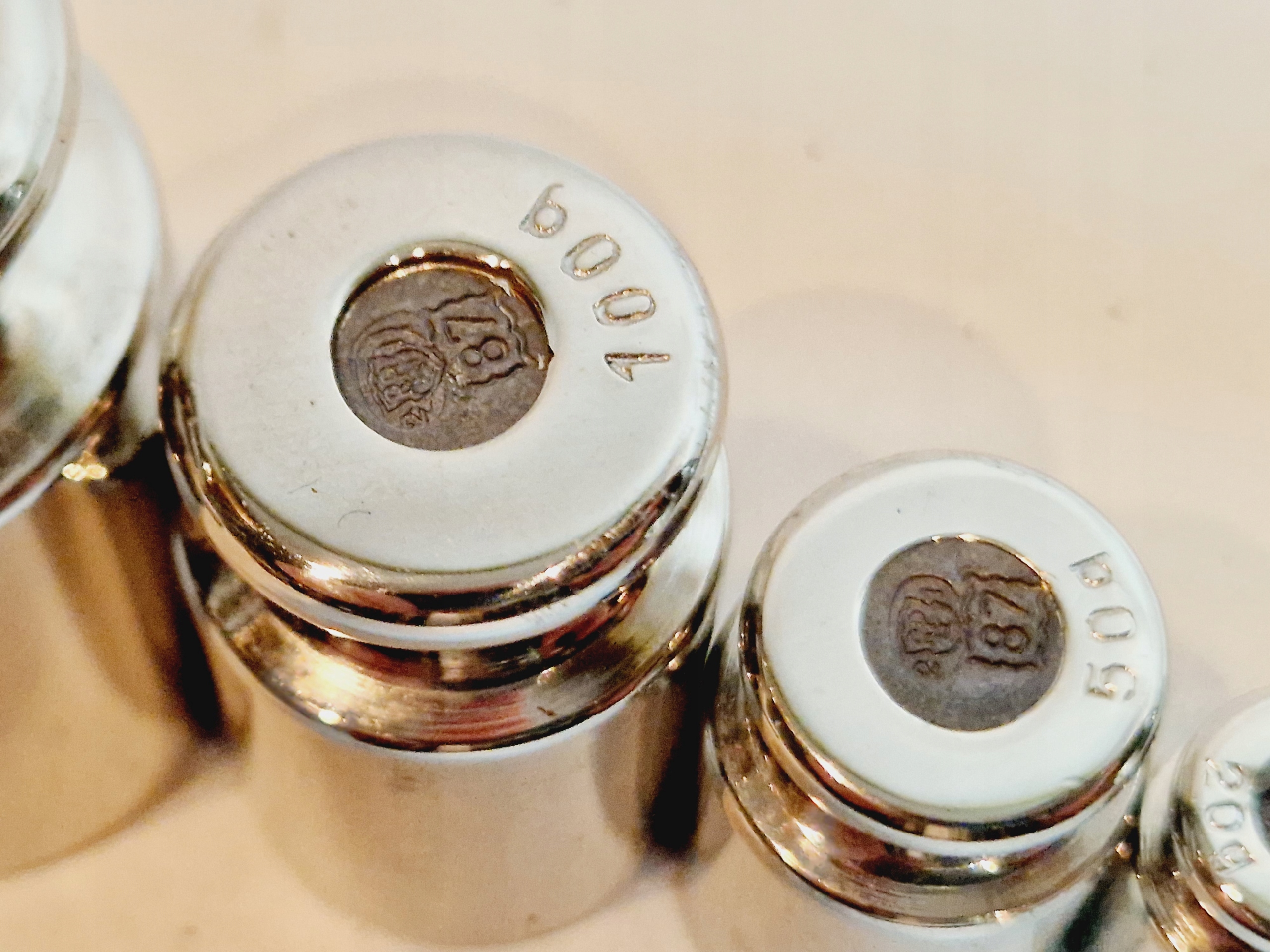 Знаки легализации на головках больших гирь (вставки из свинцовых дисков) и на нижней части пяти самых маленьких:
