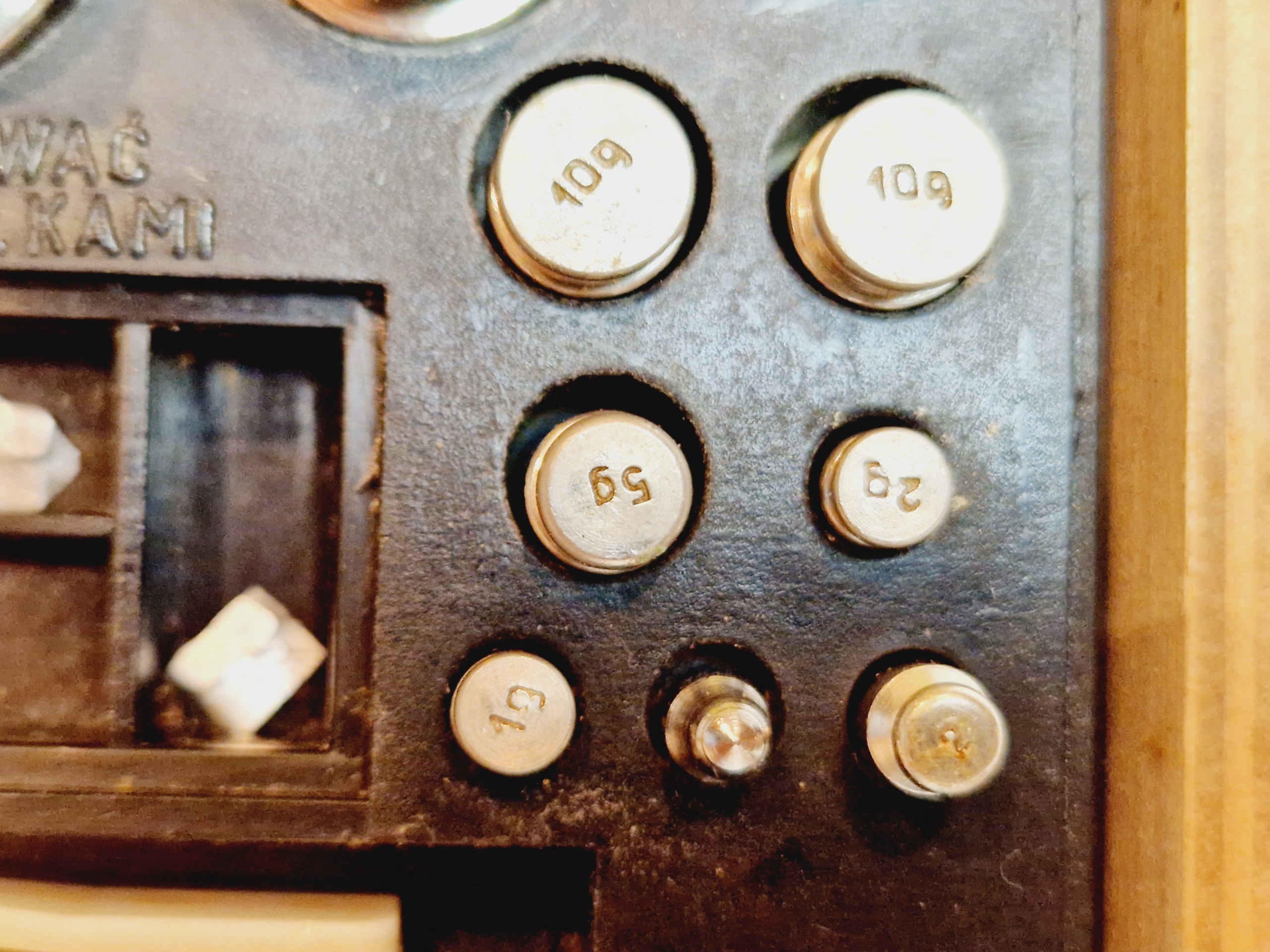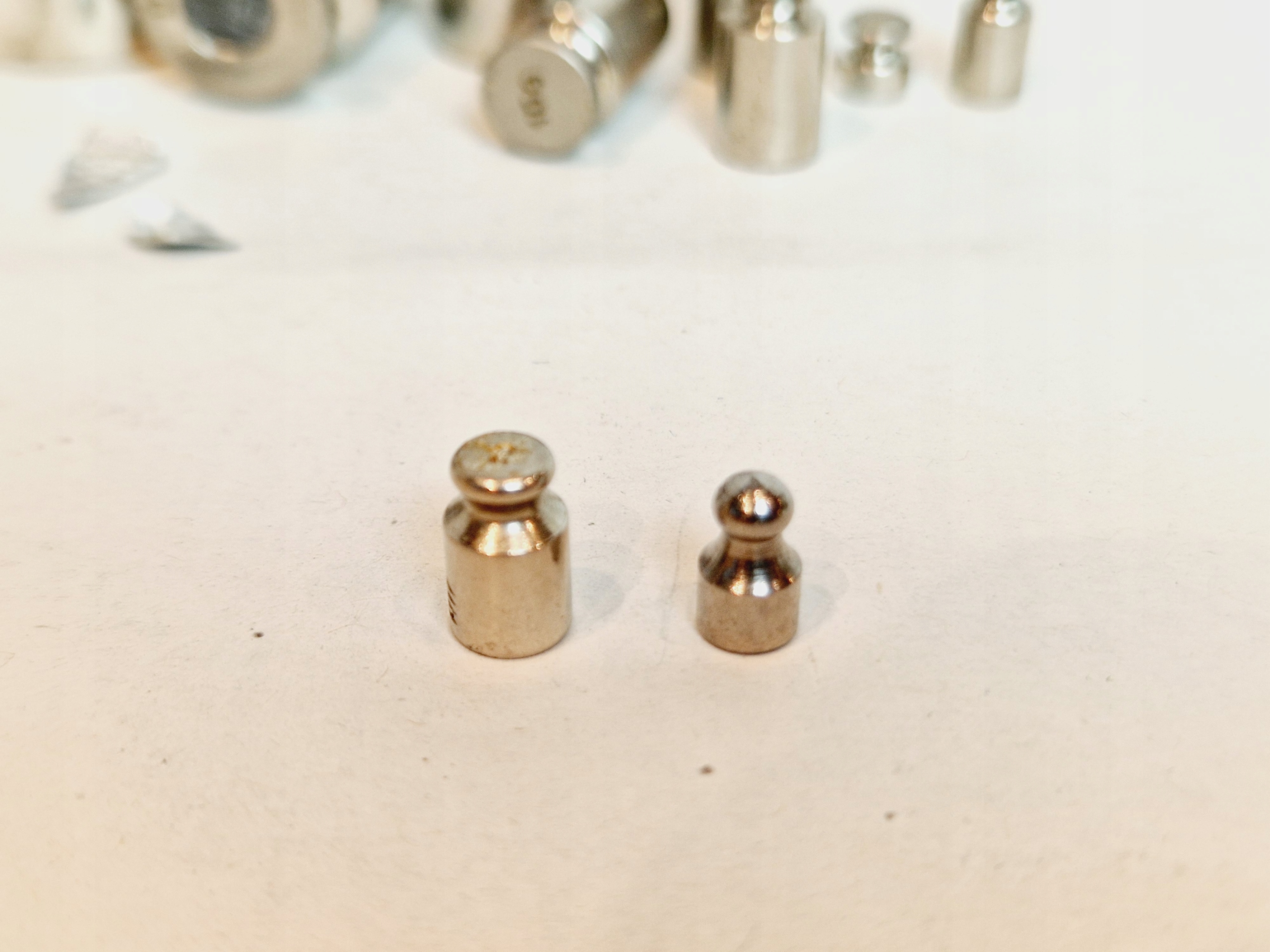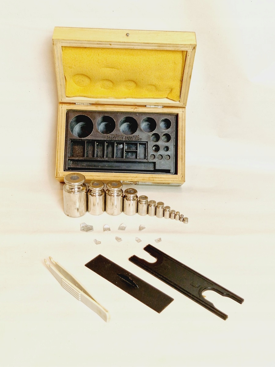Примечание: выбраны самые маленькие гири - «2г» и «1г» и миллиграммовые пластинки - они дополняют набор...