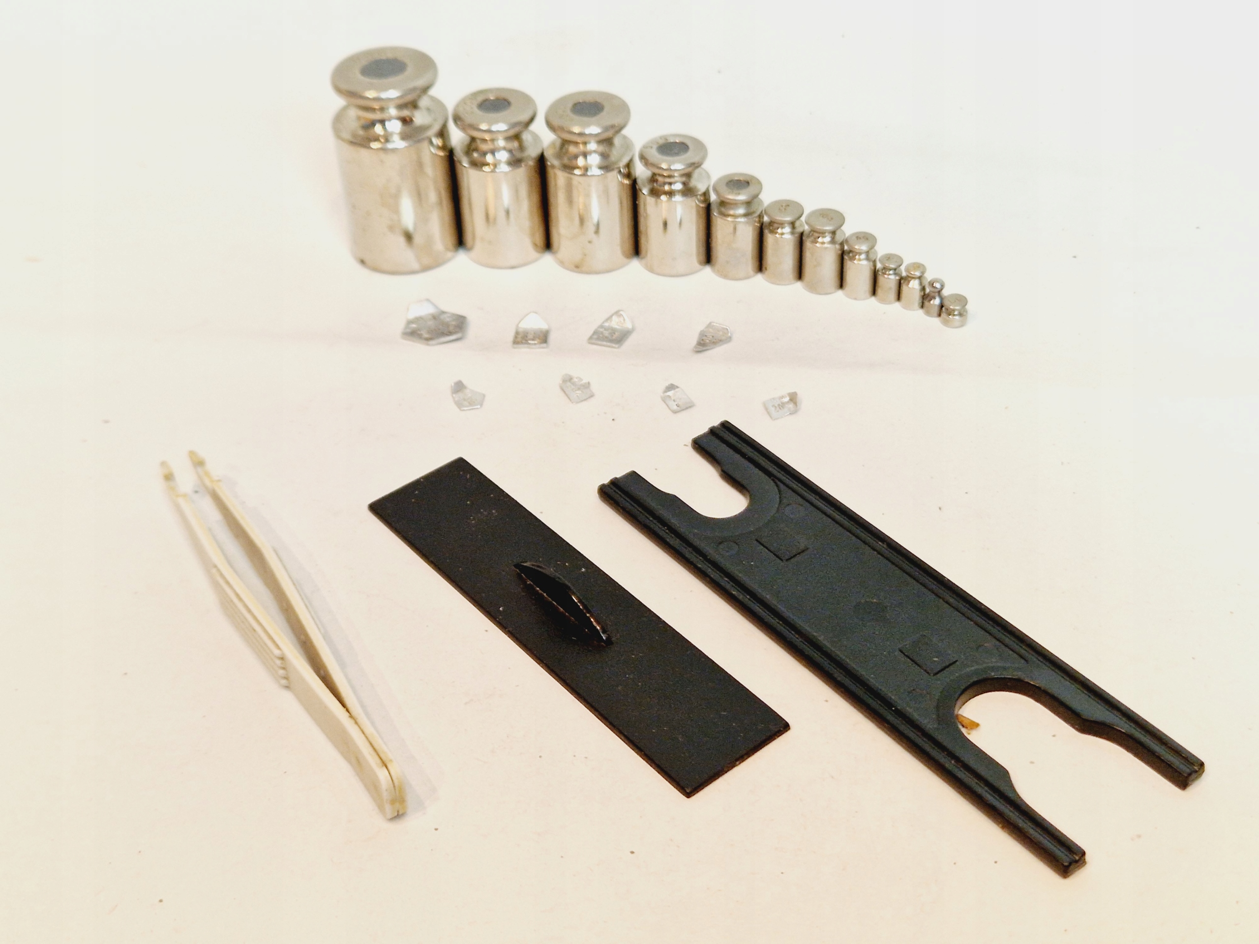 Внимание: выбираются самые маленькие гири - «2г» и «1г» и миллиграммовые пластины - они дополню комплект ..