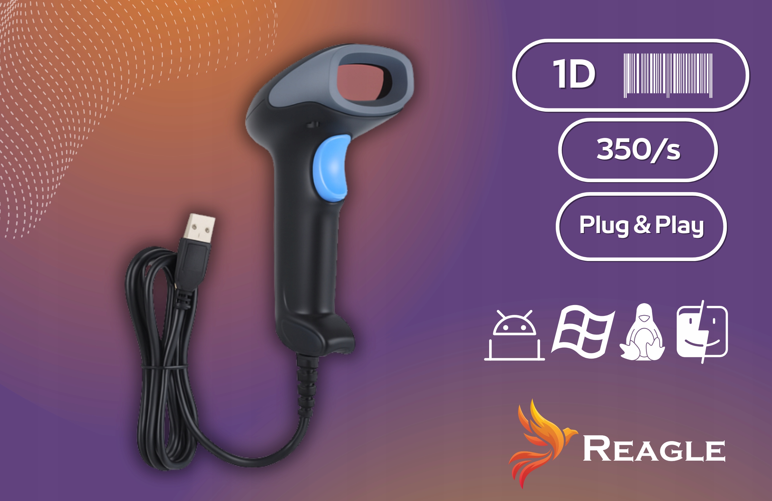 RSCAN3 от Reagle — профессиональныйпроводной сканер, предназначенный для быстрого, точного и безошибочногосчитывания штрих-кодов 1D. Благодаря лазерным технологиям и эргономичному дизайну он идеально подходит для торговых точек, складов, офисов и везде, где важны скорость и надежность работы.