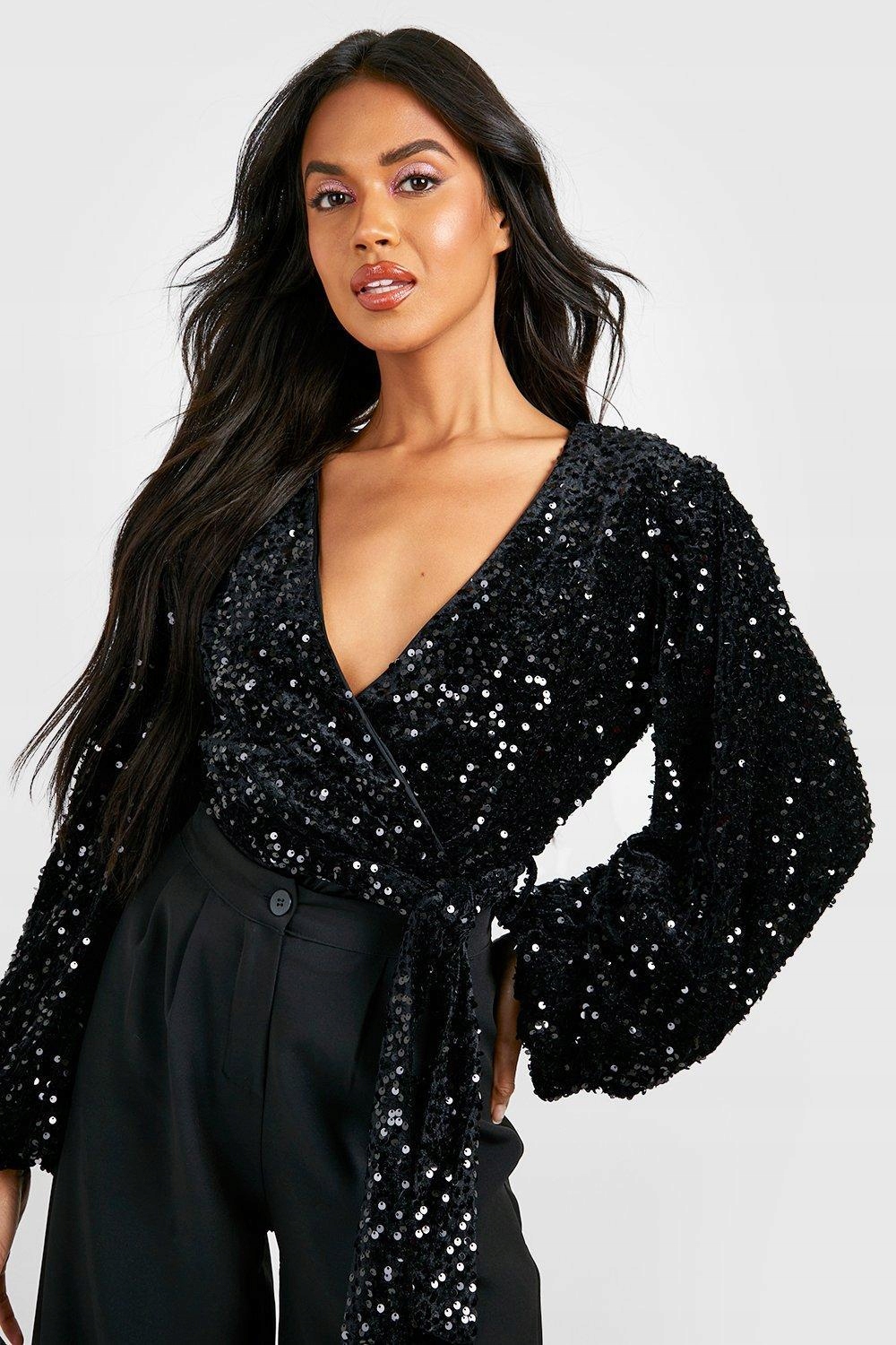 1F2A17 ЧЕРНОЕ БОДИ BOOHOO С ДЛИННЫМИ РУКАВАМИ И ПАЙЕТКАМИ A02 M