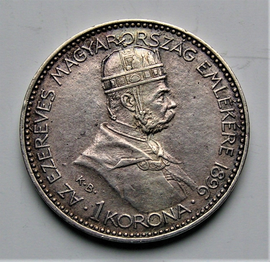 1kor.Fr Józef I 1896r, wybita na1000-lecie Węgier-b.ładna