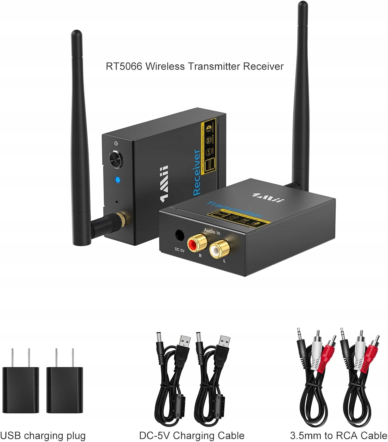 - 【Дальний радиус действия】Удлинитель беспроводного аудиоприемника 1Mii поддерживает технологию 2,4 ГГц и включает в себя антенны, которые могут достигать 100 м на открытом воздухе и 30–50 м в помещении. Вы можете наслаждаться музыкой по всему дому, не беспокоясь о потере звука и отключении звука. Он предназначен для беспроводной передачи звука от источника звука через передатчик на приемник, подключенный к динамику, микшеру или усилителю.