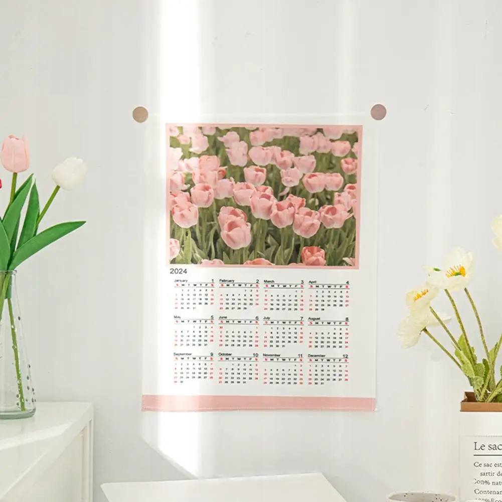 1Pc 2024 Calendar Easy Install Wall Calendar Soft Cloth Rich Color 2024