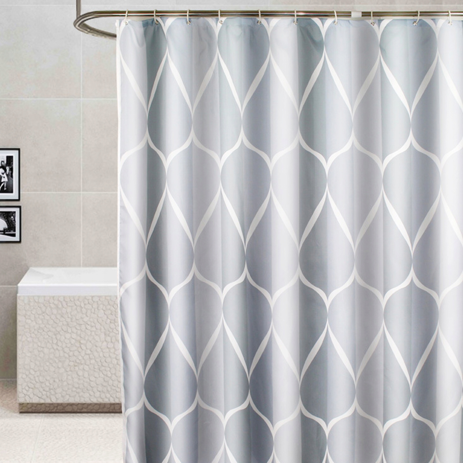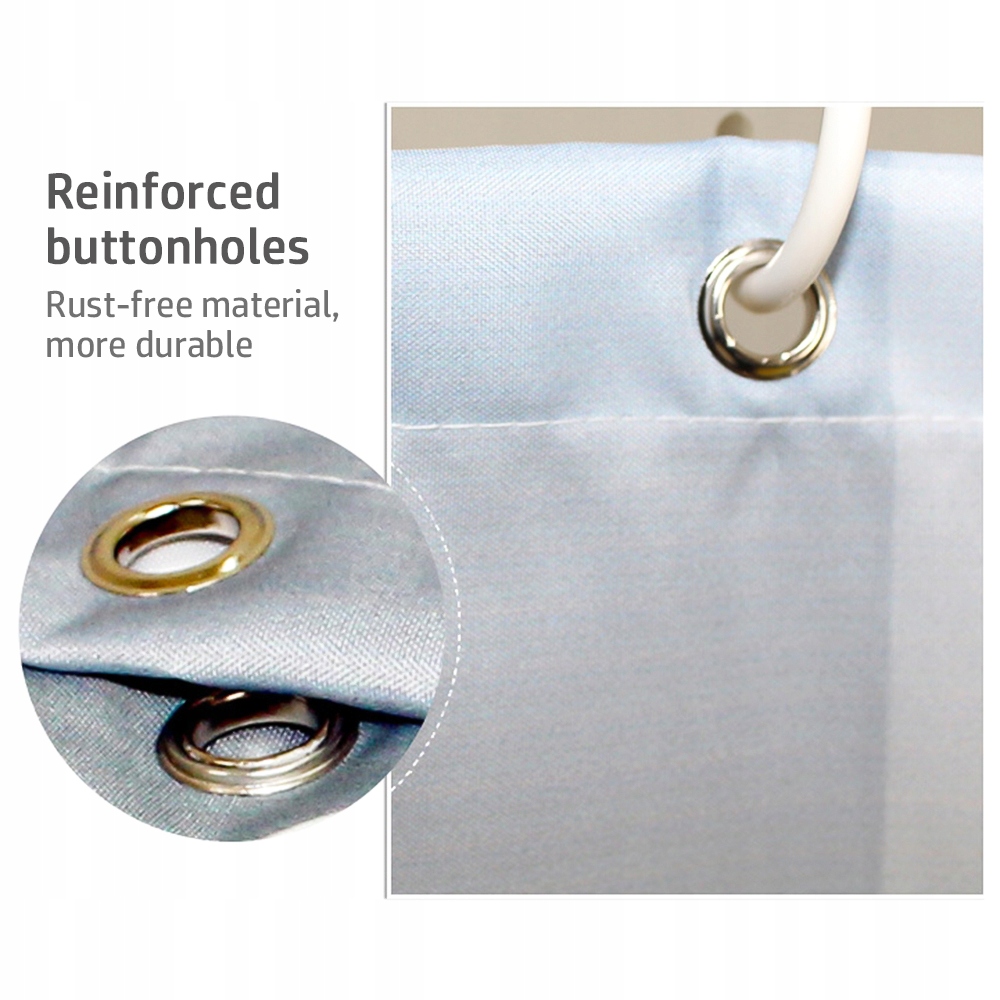 1. Ткань этой занавески душа гладкая, что значительно улучшает водонепроницаемую функцию и эффективно предотвращает приклеивание занавески для душа во время купания.