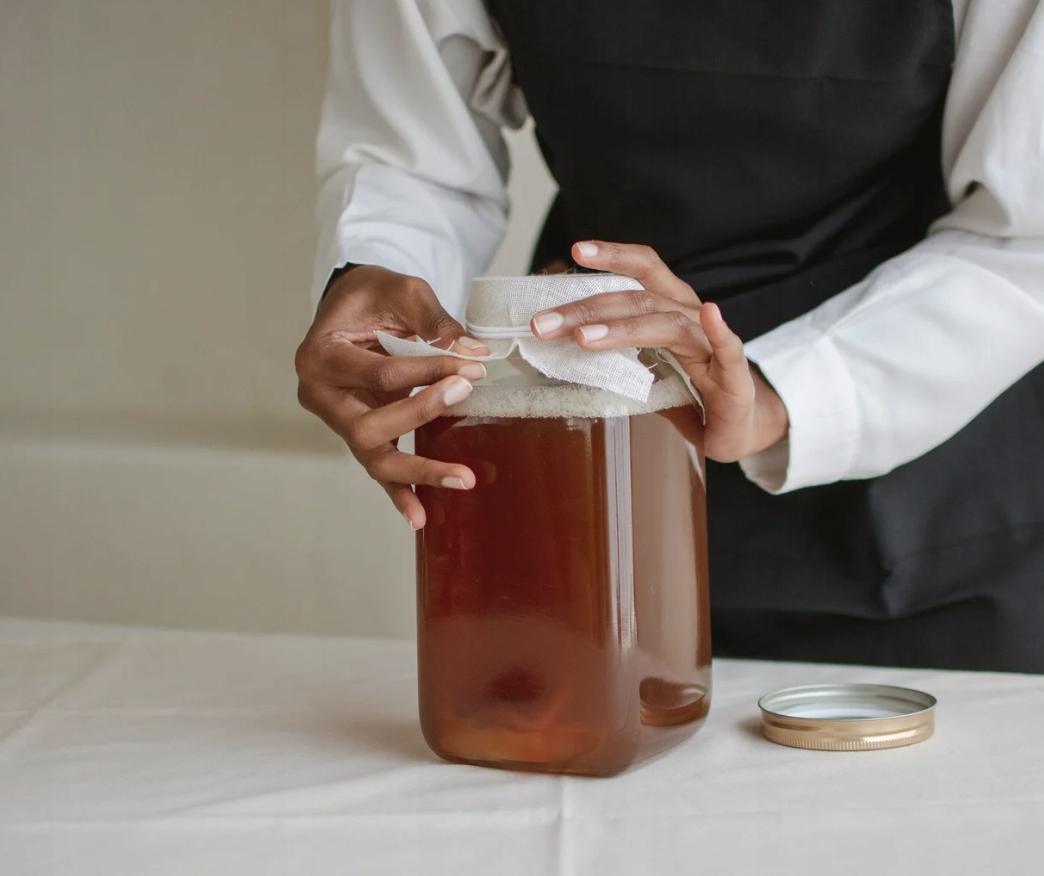 Комбуча — это ферментированный напиток, приготовленный из чая, сахара и особой культуры бактерий и дрожжей, известный как СКОБИ. В процессе брожения микроорганизмы преобразуют сахар, придавая напитку характерный слегка кисловатый вкус. Чайный гриб ценится за свои пробиотические свойства, которые поддерживают пищеварение и укрепляют организм. Регулярное употребление также способно улучшить самочувствие и поддержать иммунитет, поэтому оно завоевало популярность как естественный способ улучшения здоровья.