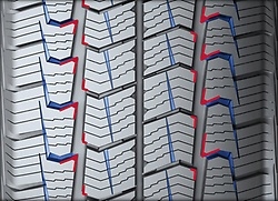 - Сочетание снежных карманов и канавок по краям облегчает сцепление и хорошее торможение на заснеженных дорогах. Благодаря этому шина обеспечивает надежную безопасность зимой.