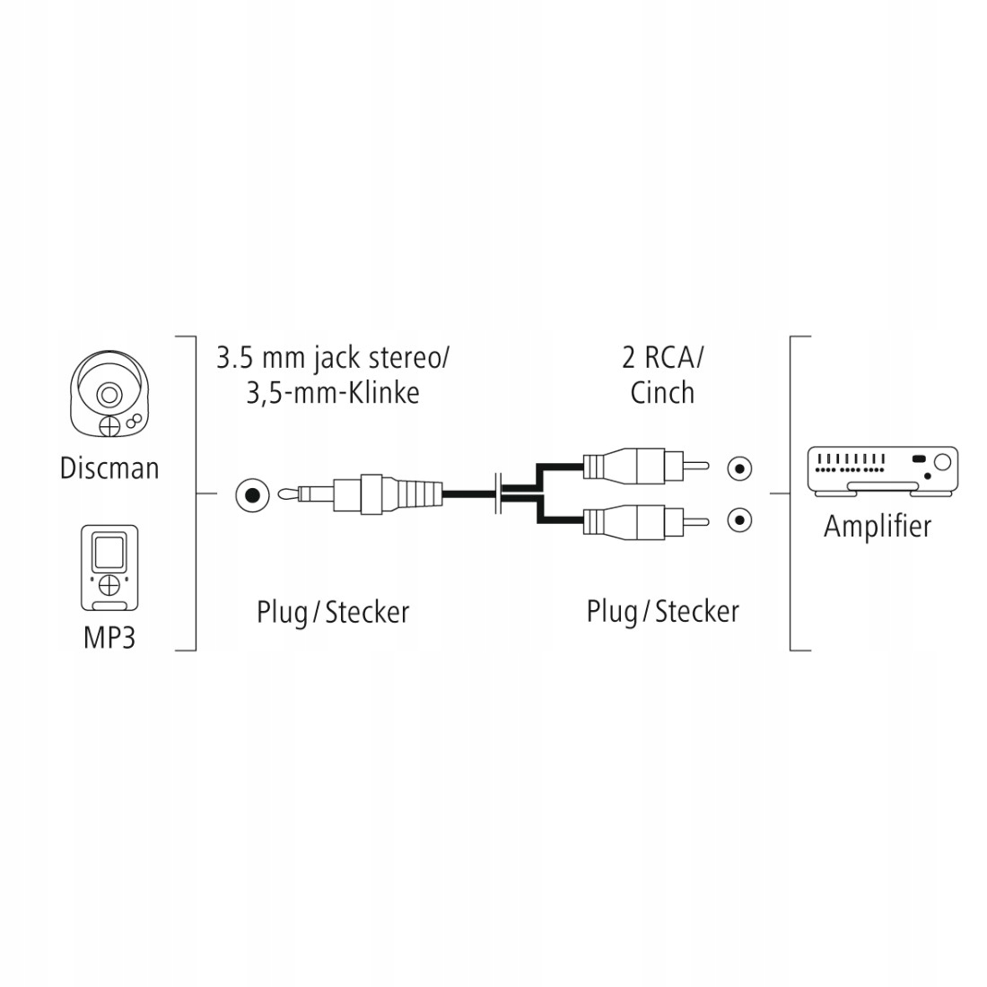 Аудиокабель: 1 штекер Mini Jack 3,5 мм (штекер) ↔ 2 штекера RCA Cinch (штекер)