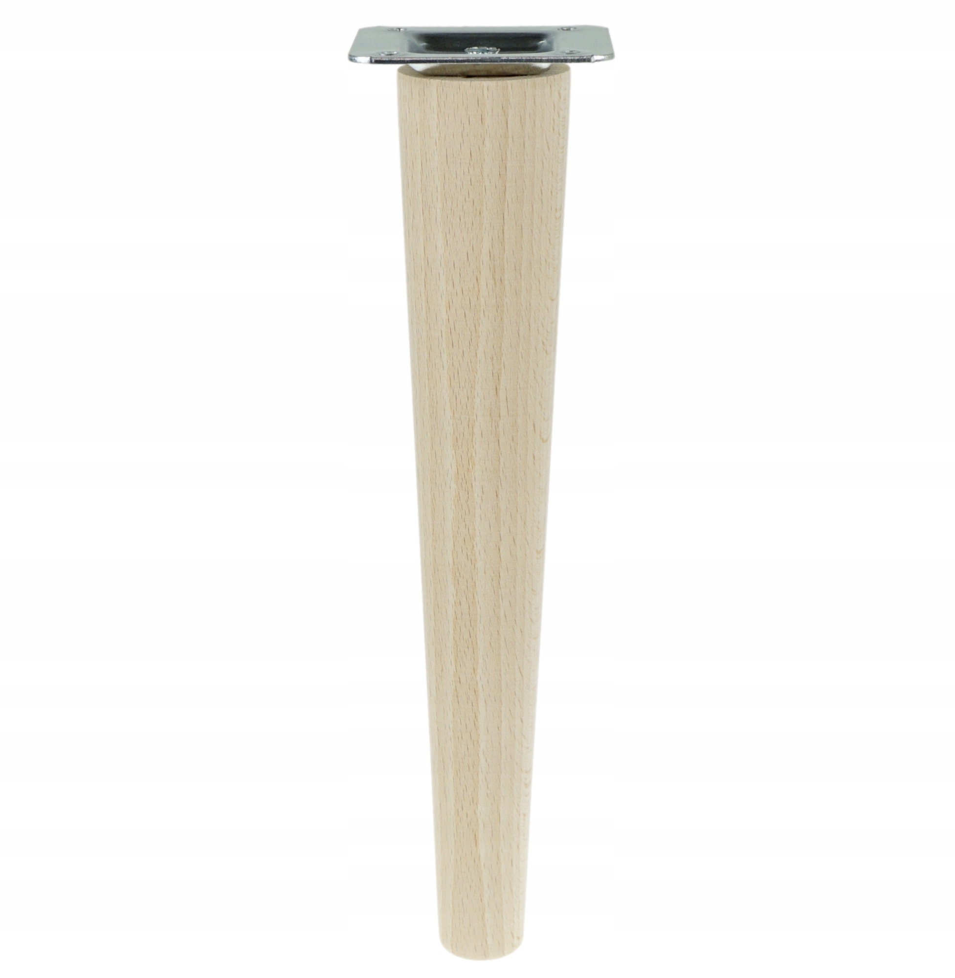 1x ДЕРЕВЯННАЯ МЕБЕЛЬНАЯ НОЖКА ДЛЯ СТОЛА, НЕОБРАБОТАННАЯ, ПРЯМАЯ, СО СТАЛЬНЫМ ЛИСТОМ, БУКОВЫЙ КОНУС, 45 СМ