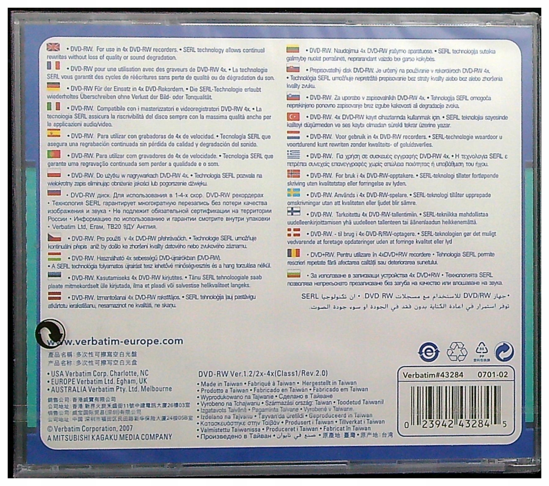 1x VERBATIM DVD-RW 4,7 ГБ 4x диска
