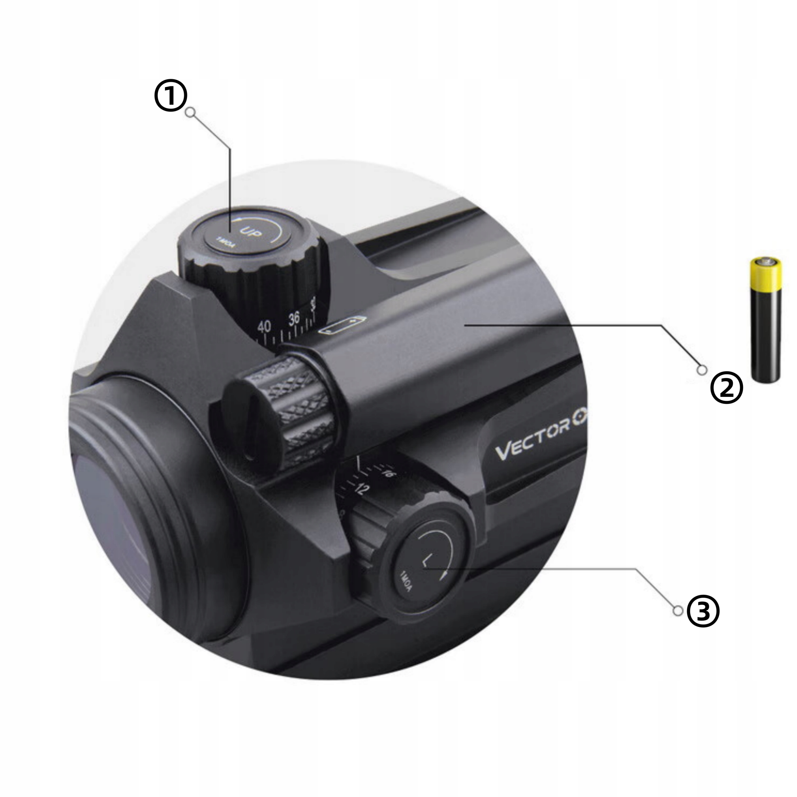 Благодаря конструкции батареи AAA, емкость резерва мощности в 5 раз выше, чем в случае батареи CR2032. Теоретически, достопримечательности с красной точкой длится дольше.
