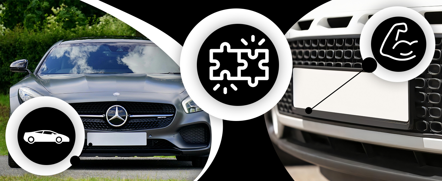 Рамки для лицензионных знаков отличаются от Universal Size , что подходит для большинства стандартных плат, используемых в легковых автомобилях и фургонах