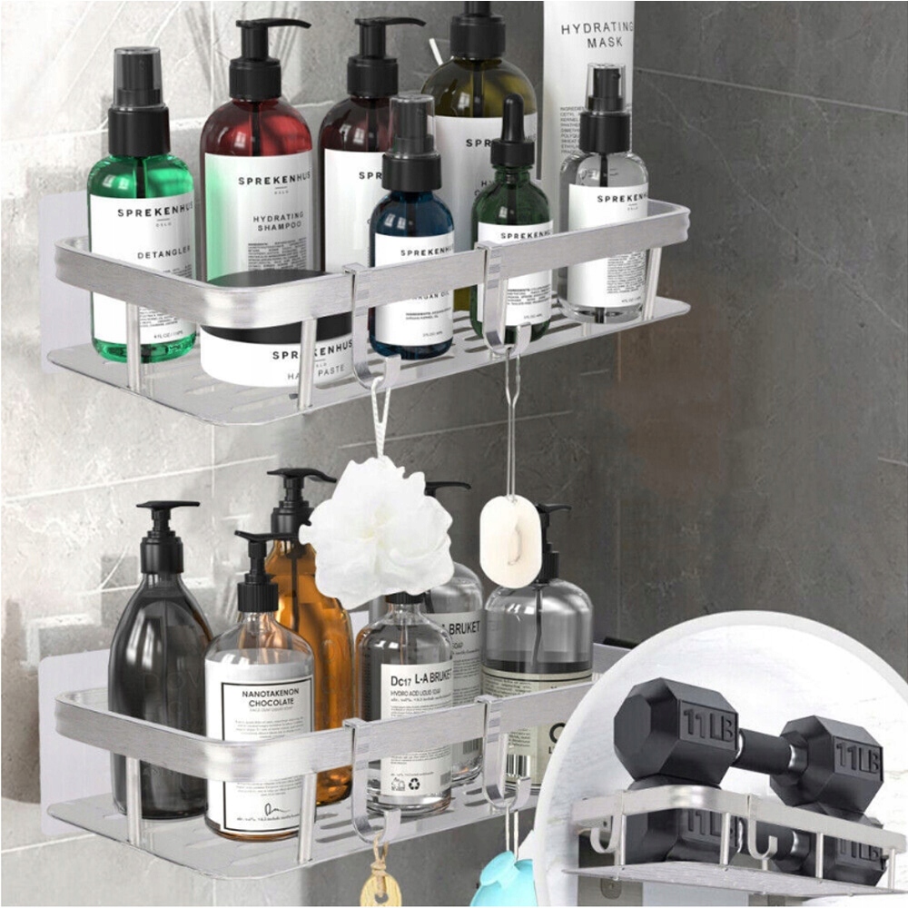 🚿wielofunccyjna półka prysznicowa: 2 półki prysznicowe bez Wiercenia Z 4 Wyjmowanymi Haczykami. Вы можете хранить не только шампунь, кондиционер, гель для душа, мыло и т. Д., Но также душевая губка, полотенца, кисти, бритвы и т. Д. Это делает ванную комнату аккуратной и эффективно использует пространство.