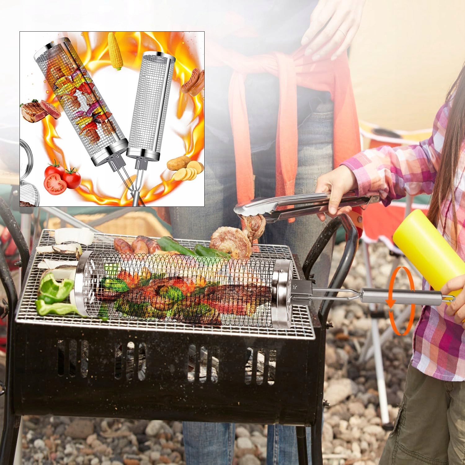 🍡🍢🍡🍢🍡🍢 h2> 360 ° из нержавеющей стали цилиндрическая корзина для гриля для кемпинга, пикник, событие барбекю h2>