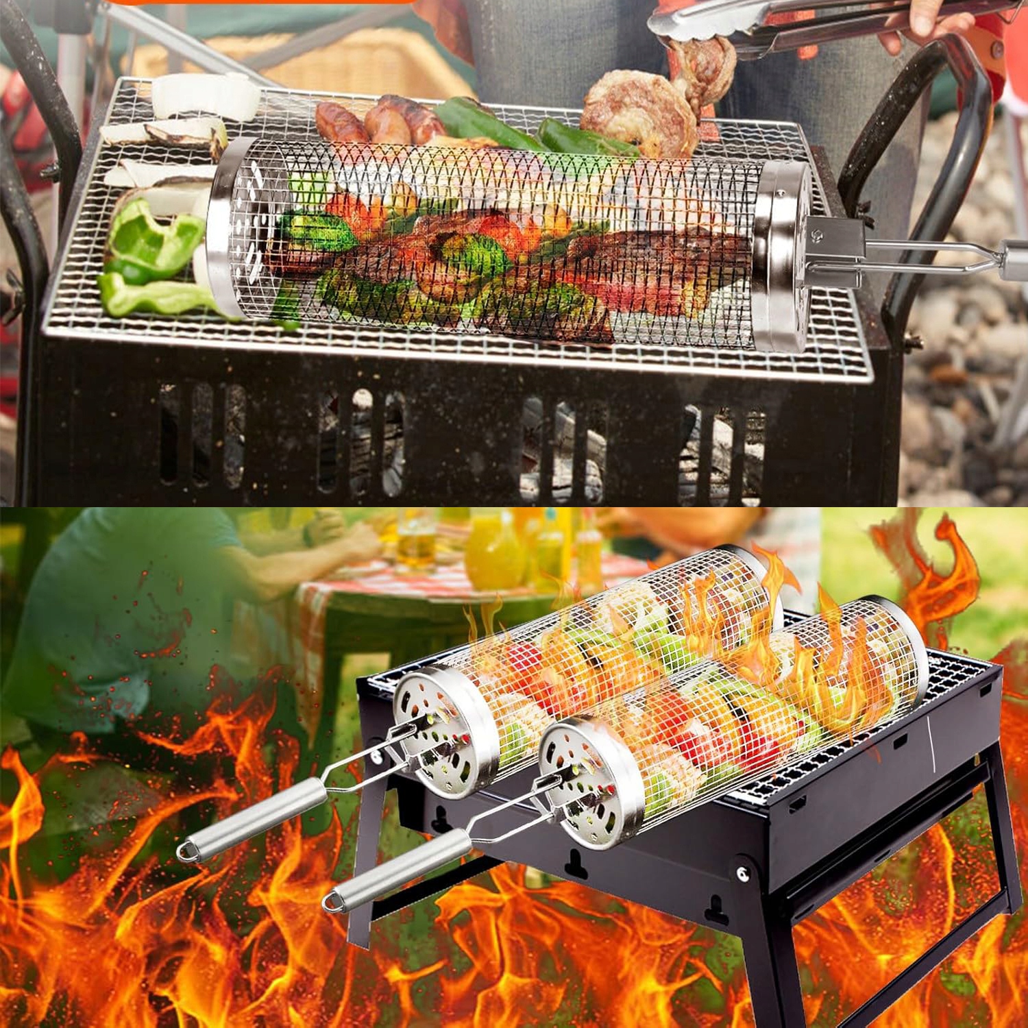 ✅pondo Наша инновационная цилиндрическая корзина для барбекю вращается легко и оснащена съемной ручкой для точного управления, чтобы каждый раз получать идеальные результаты гриля.