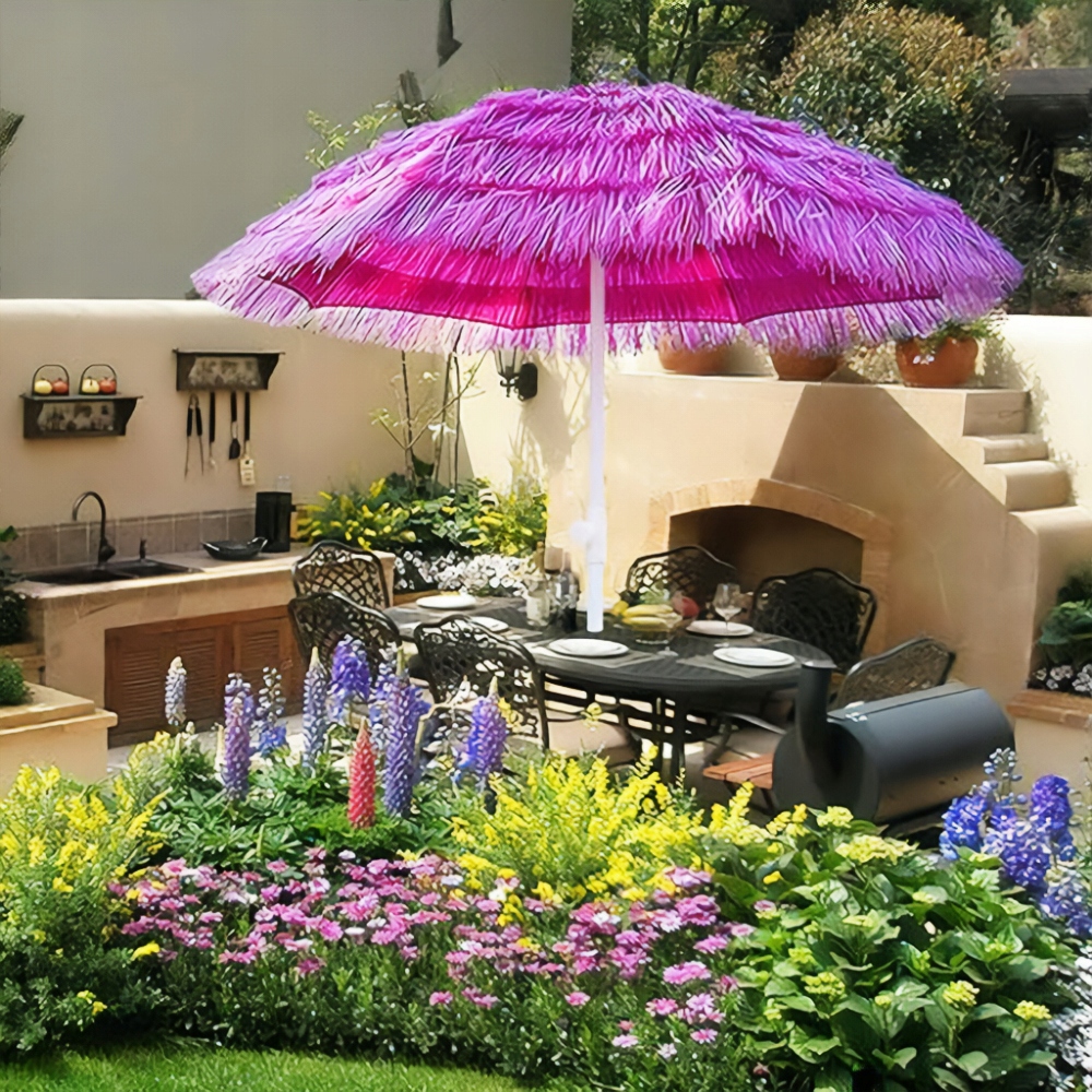 Зонт в гавайском стиле придаст неповторимую атмосферу пространству, в котором он будет расположен. Благодаря ему вы создадите тень и защитите от вредного воздействия УФ-лучей.