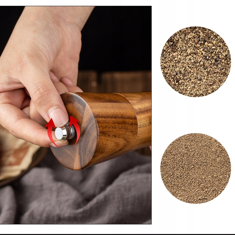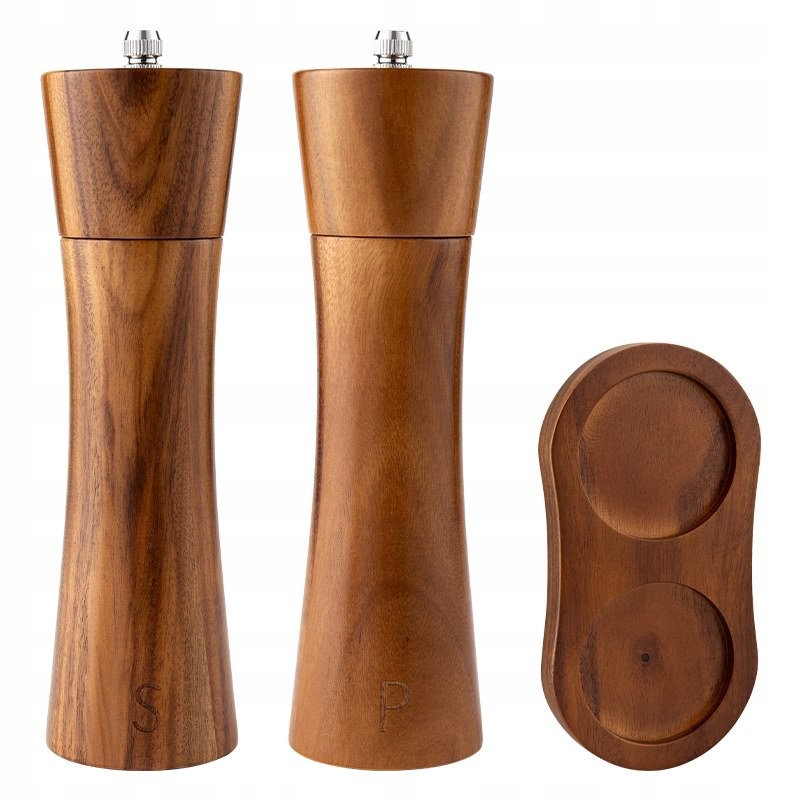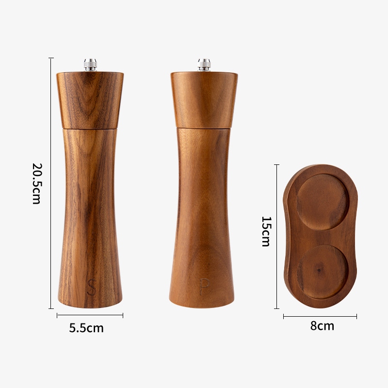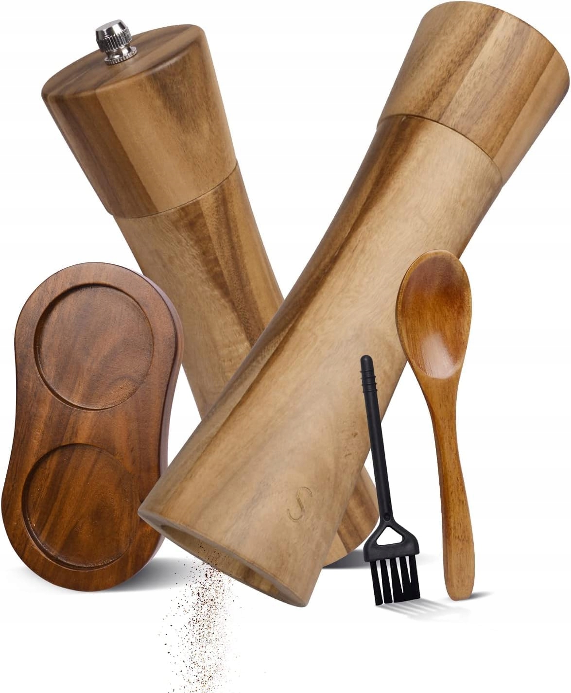 Мельщики для перца и соли необходимы на каждой кухне, наш набор шлифований специй изготовлен из натуральной акации, его уникальное среза означает, что каждая мельница уникальна.