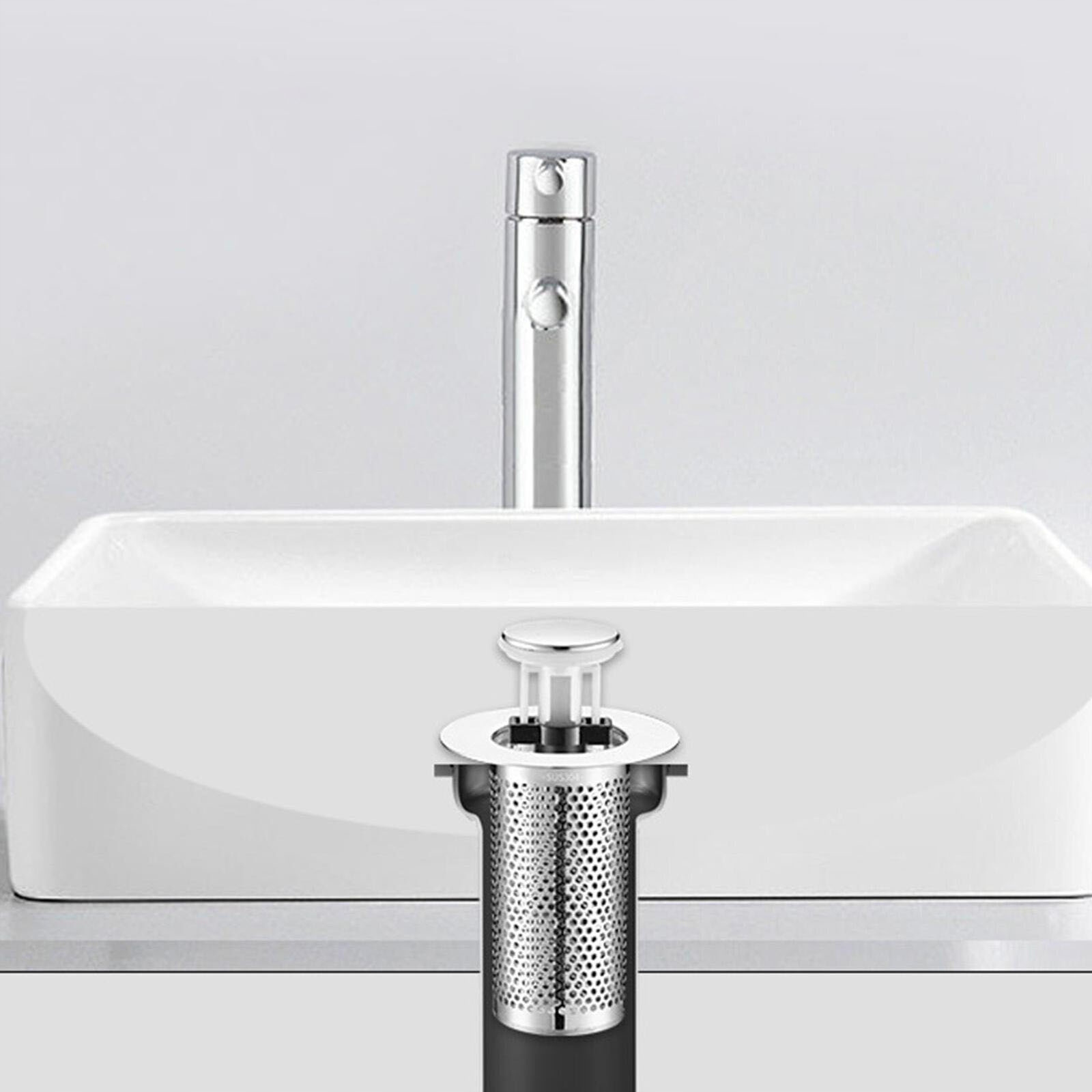 раковина в ванной комнате изготовлена из утолщенной нержавеющей стали, которая идеально предотвращает засорение дренажных труб. Просто нажмите верхнюю крышку, чтобы удалить накопленные волосы. Легкая установка на водопроводных трубах без использования инструментов. Благодаря этому необходимому аксессуару, ваша раковина будет чистой и свободной от неприятных запахов.