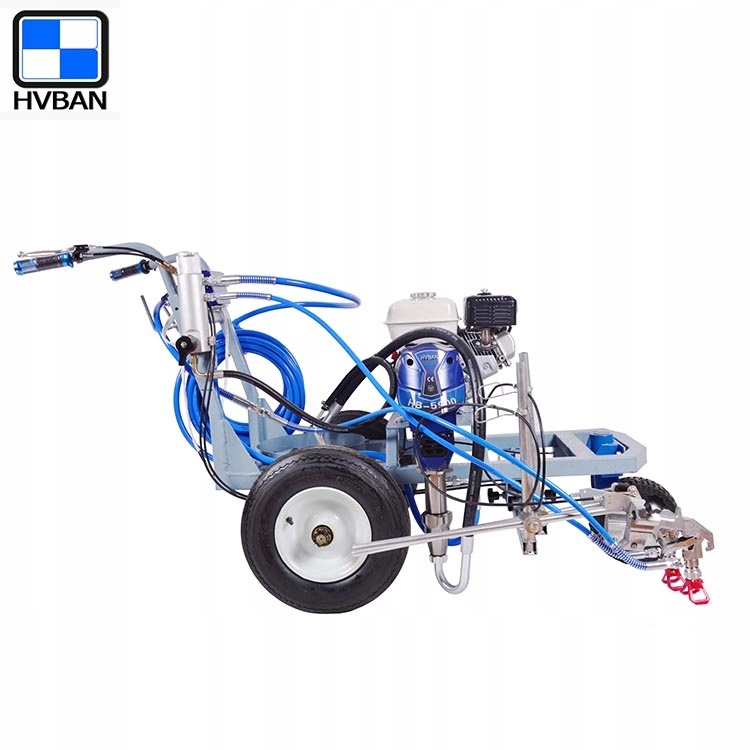 HB5900 — безвоздушный краскораспылитель HVBAN, оснащенный двигателем внутреннего сгорания, что позволяет работать в местах без электропитания.Идеален для покраски дорожных полос, благодаря двум пистолетам в комплекте можно красить 2 полосы одновременно. , производительность 5,3 л краски в минуту позволяет выполнять покраску очень быстро.