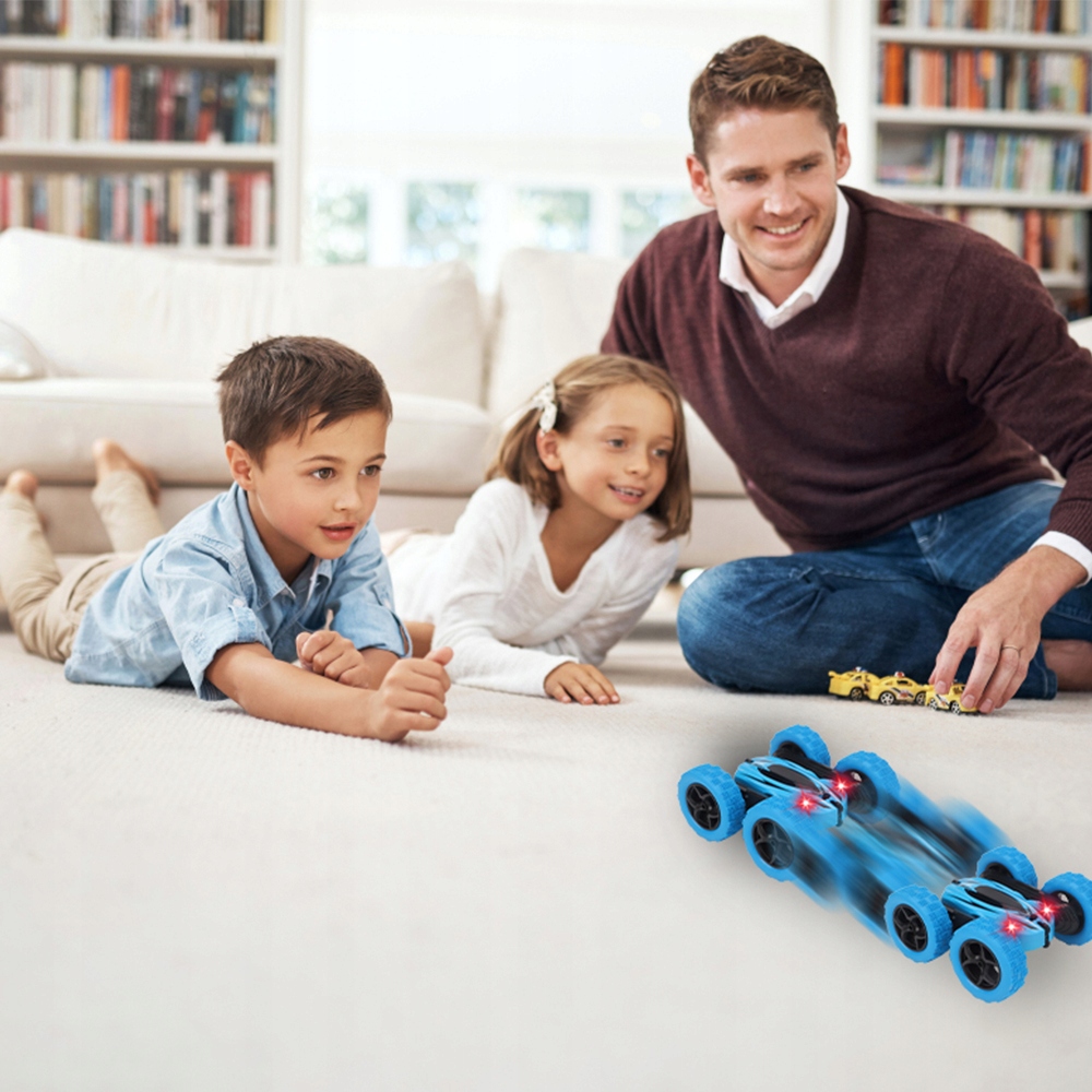 Она подарит вам разнообразные игровые впечатления. Этот радиоуправляемый автомобиль предлагает возможность участвовать в гонке задним ходом, двигаться вперед, назад, поворачивать влево и вправо, вращение вбок, вращение на 360 градусов и вращение. Его также можно превратить в танцующую машинку, и дети смогут выполнять различные трюки.