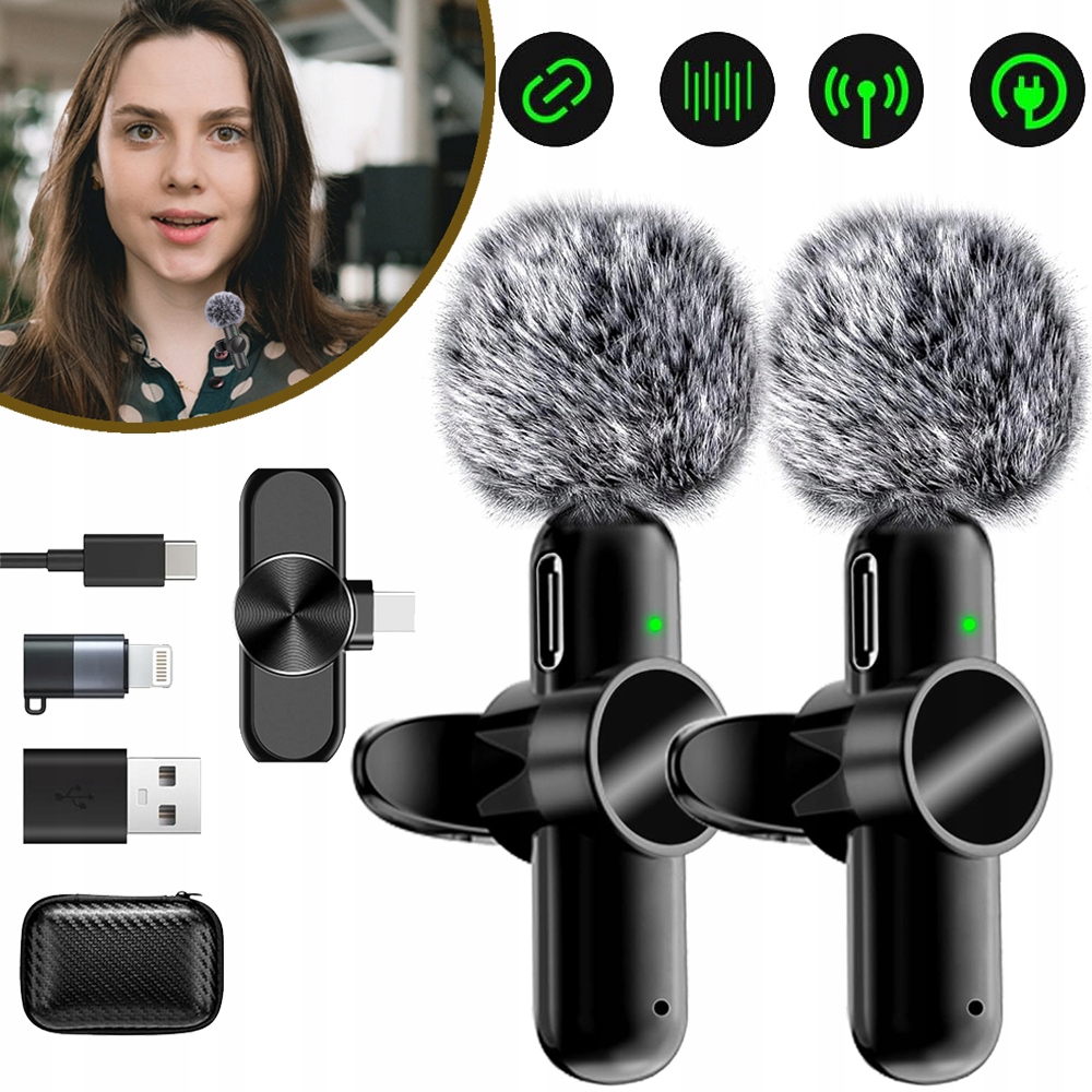 2 БЕСПРОВОДНЫХ МИНИ-МИКРОФОНА ДЛЯ ЗАПИСИ ВИДЕО