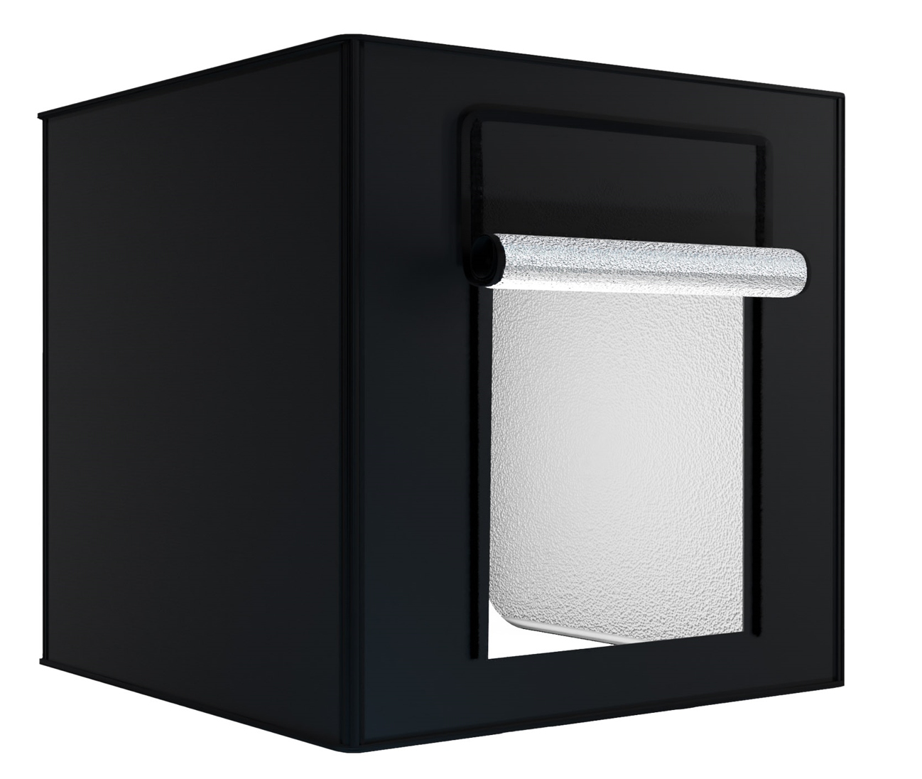 Палатка оснащена двумя светодиодными панелями, положение которых можно регулировать в соответствии с индивидуальными потребностями для получения нужного количества света. Внутри палатки использован материал, равномерно распределяющий свет. Используя дополнительный рассеиватель, можно получить нежное и рассеянное освещение, уменьшая восприятие бликов, отражений и теней на фотографируемом товаре.