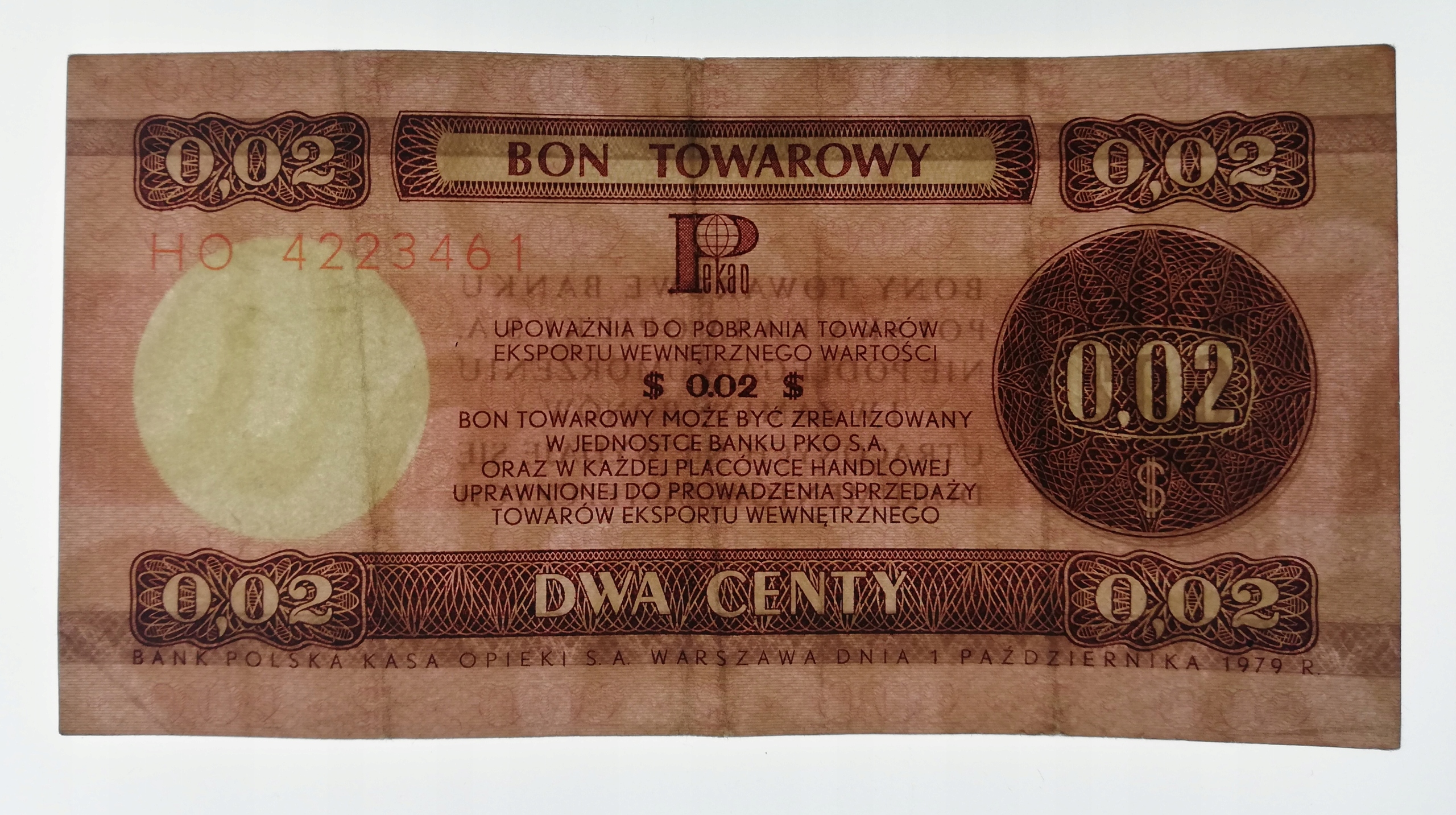 2 центи 1979 року товарний ваучер Pewex серії HO Large