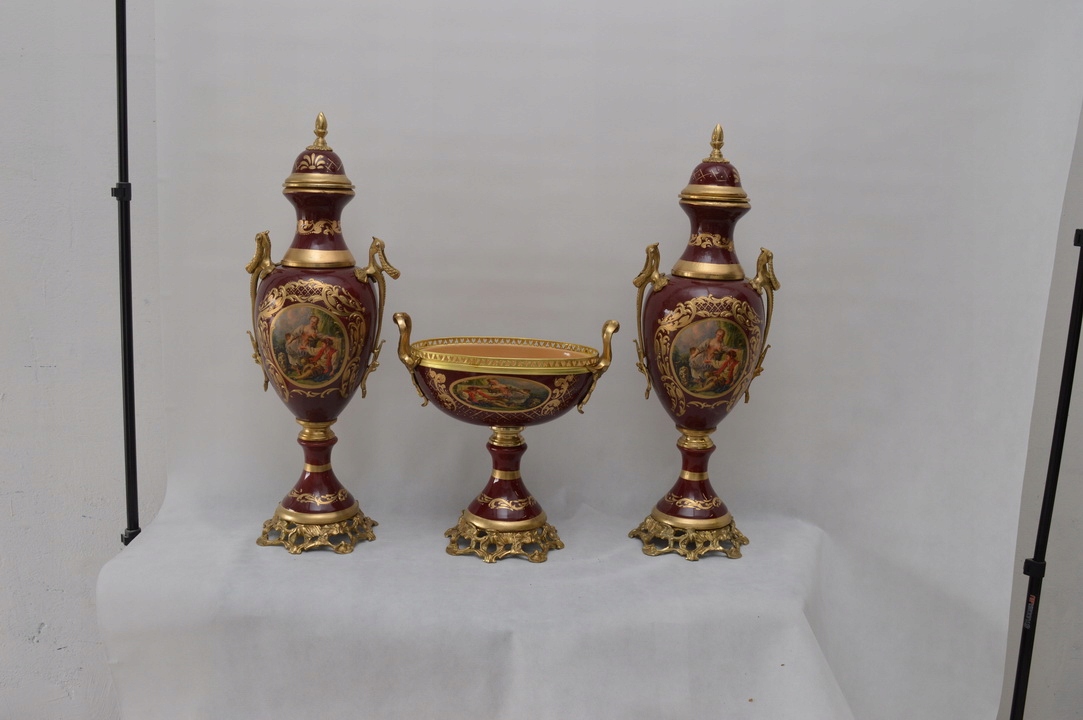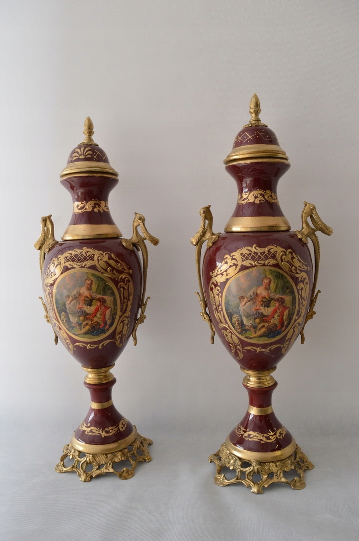 Здравствуйте, сегодня я хотела бы предложить Вам фарфоровый сервиз музейного качества с бронзовой фурнитурой. Красивые украшения, позолота и роспись по фарфору в реальности гораздо красивее, чем на фотографиях.