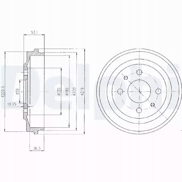 Наружный диаметр тормозного барабана [мм]: 219