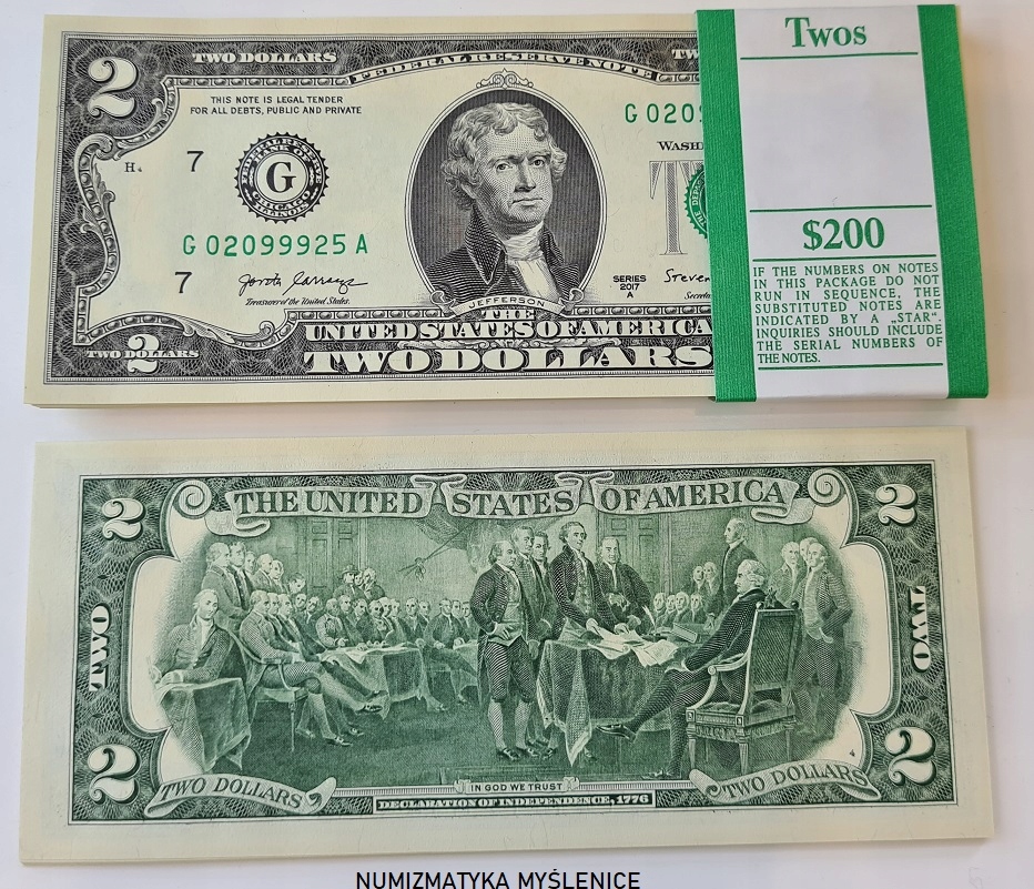 Новейшие двухдолларовые банкноты 2017 года. Банк Чикаго!