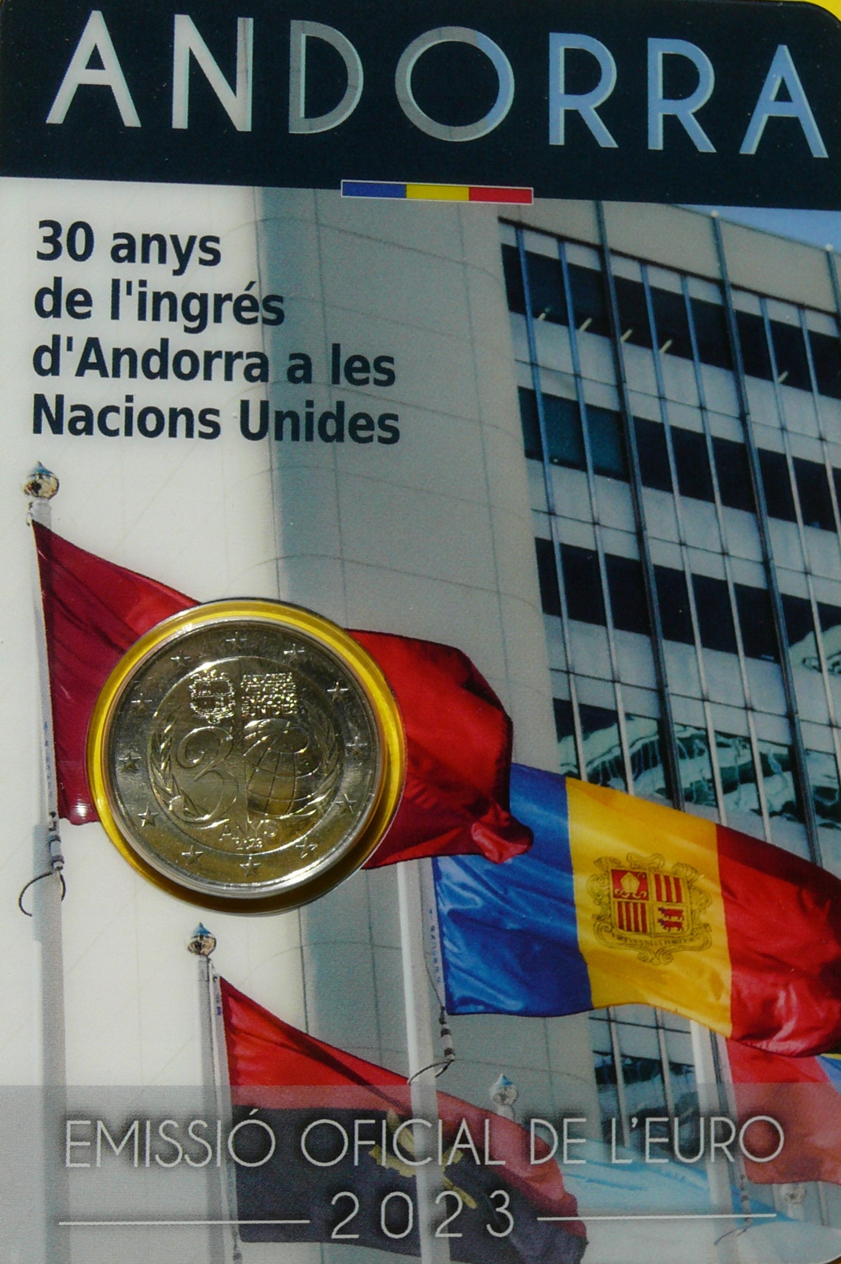 АУКЦИОН - КРАСИВАЯ ОРИГИНАЛЬНАЯ КОММЕРЧЕСКАЯ МОНЕТА - 2 ЕВРО - АНДОРРА 2023 г. - 3-Я ГОДОВЩИНА ДОСТУПА АНДОРРЫ В ООН - МОНЕТ + СЕРТИФИКАТ ПОДЛИННОСТИ - НА ДРУГИХ АУКЦИОНАХ Я ПРЕДЛАГАЮ МОНЕТЫ ИЗ ЭТОЙ СЕРИИ - ПОСМОТРИТЕ. В