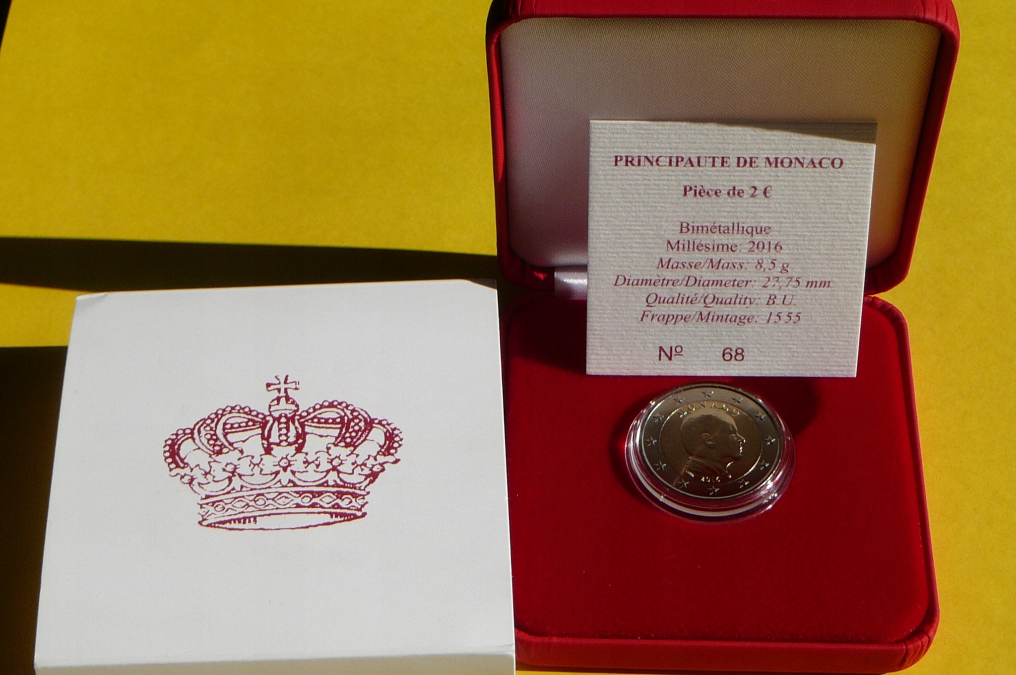 НА АУКЦИОНЕ КРАСИВАЯ ОРИГИНАЛЬНАЯ И РЕДКАЯ ПАМЯТНАЯ МОНЕТА - 2 ЕВРО - МОНАКО 2016 - ПРИНЦ АЛЬБЕРТ - ИЗБРАННЫЕ МОНЕТЫ ВЫСОЧАЙШЕГО КАЧЕСТВА БУ Блестящие Не бывшие в обращении - ОЧЕНЬ РЕДКОЕ СЛУЖЕНИЕ ВСЕГО 1555 ШТУК!!! - Монетный двор + СЕРТИФИКАТ ПОДЛИННОСТИ + Футляр + КАРТОН - Я ВЫСТАВЛЯЮ МНОГО ЕВРО МОНЕТ ИЗ МОНАКО НА ДРУГИХ АУКЦИОНАХ - ПОЖАЛУЙСТА, ПРОВЕРЬТЕ