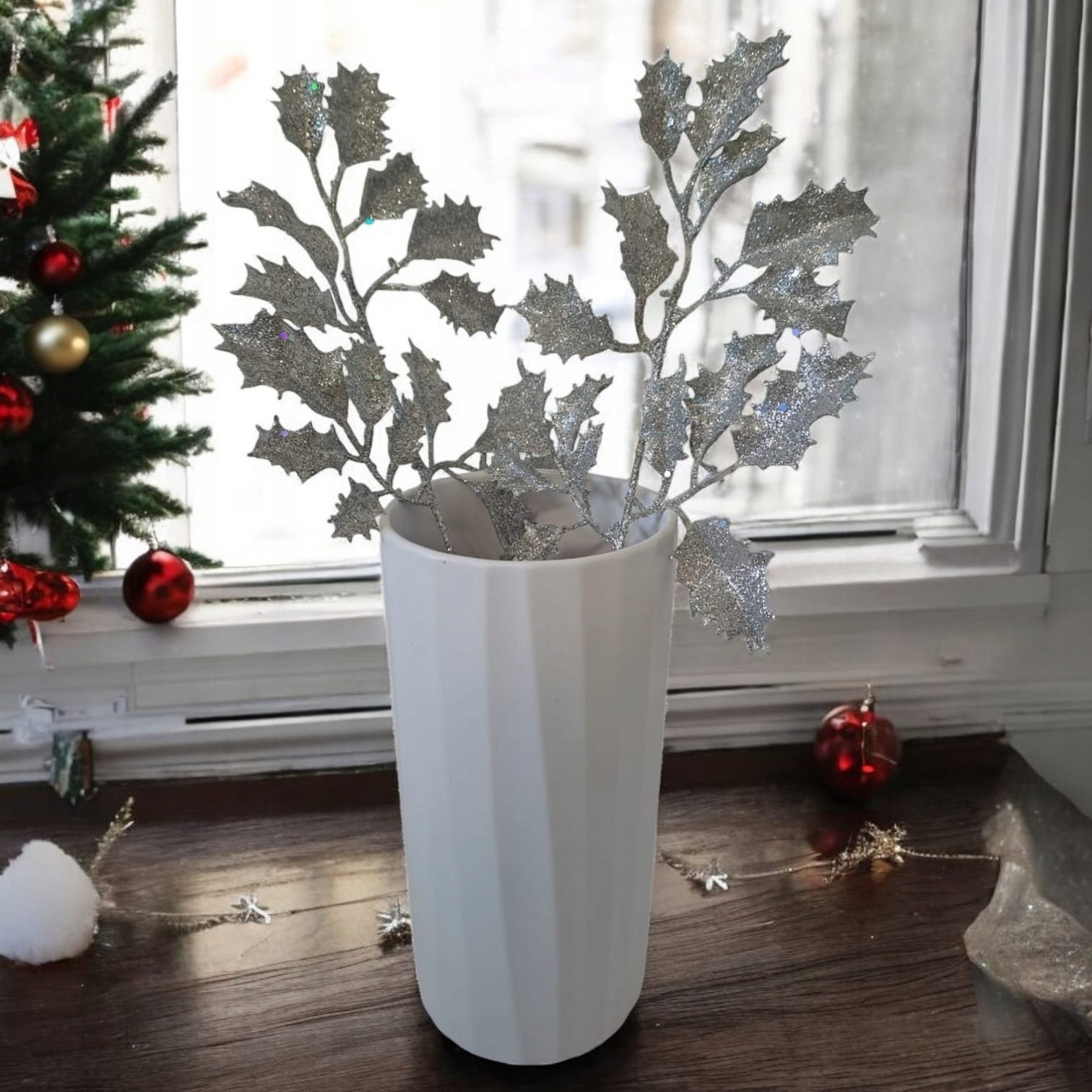 СЕРЕБРЯНАЯ РОЖДЕСТВЕНСКАЯ ВЕТКА, УКРАШЕНИЕ ДЛЯ СТЕЙКА 26 СМ