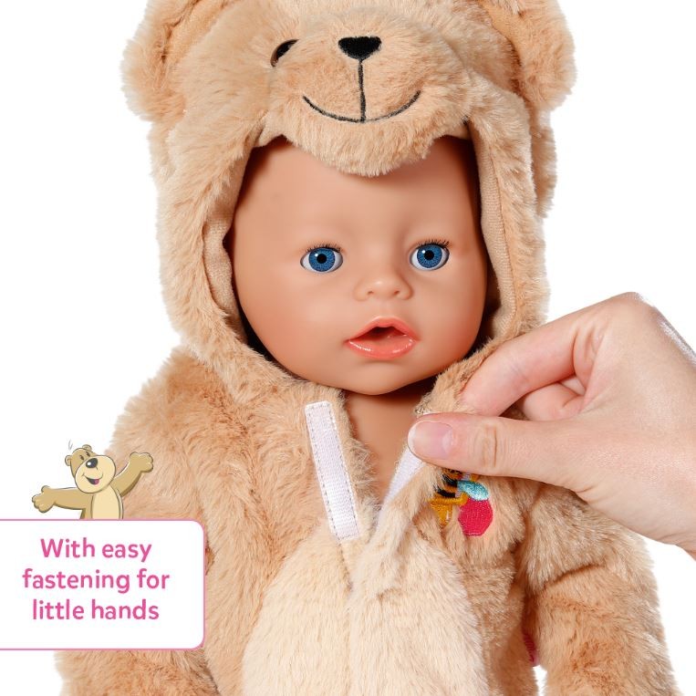 Это маленький медведь? Нет, это родился ребенок! В своем очаровательном костюме с плюшевым мишкам выглядит так же, как ее лучший друг Тедди! В костюме, изготовленном из чрезвычайно мягкого, уютного материала с капюшоном в форме плюшевого мишка, может играть с миской в лесу и совместно открыть свой мир медведей. Подходит для всех куклов, родившихся, диаметром 43 см, кукла не включена в набор. Подходит для детей в возрасте 3+.
