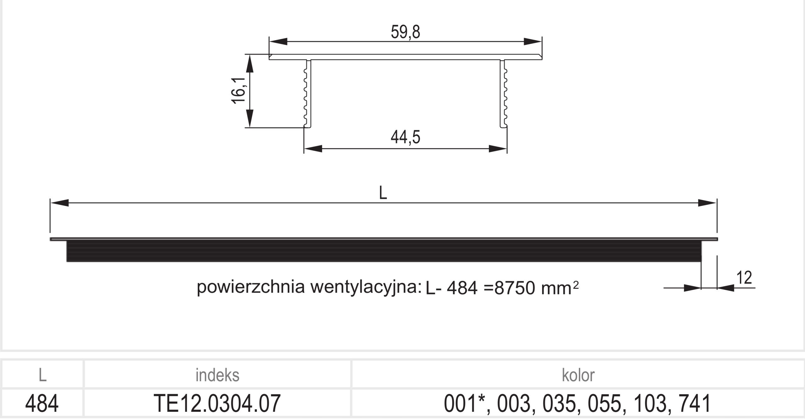 - Площадь вентиляции – 8750 мм².