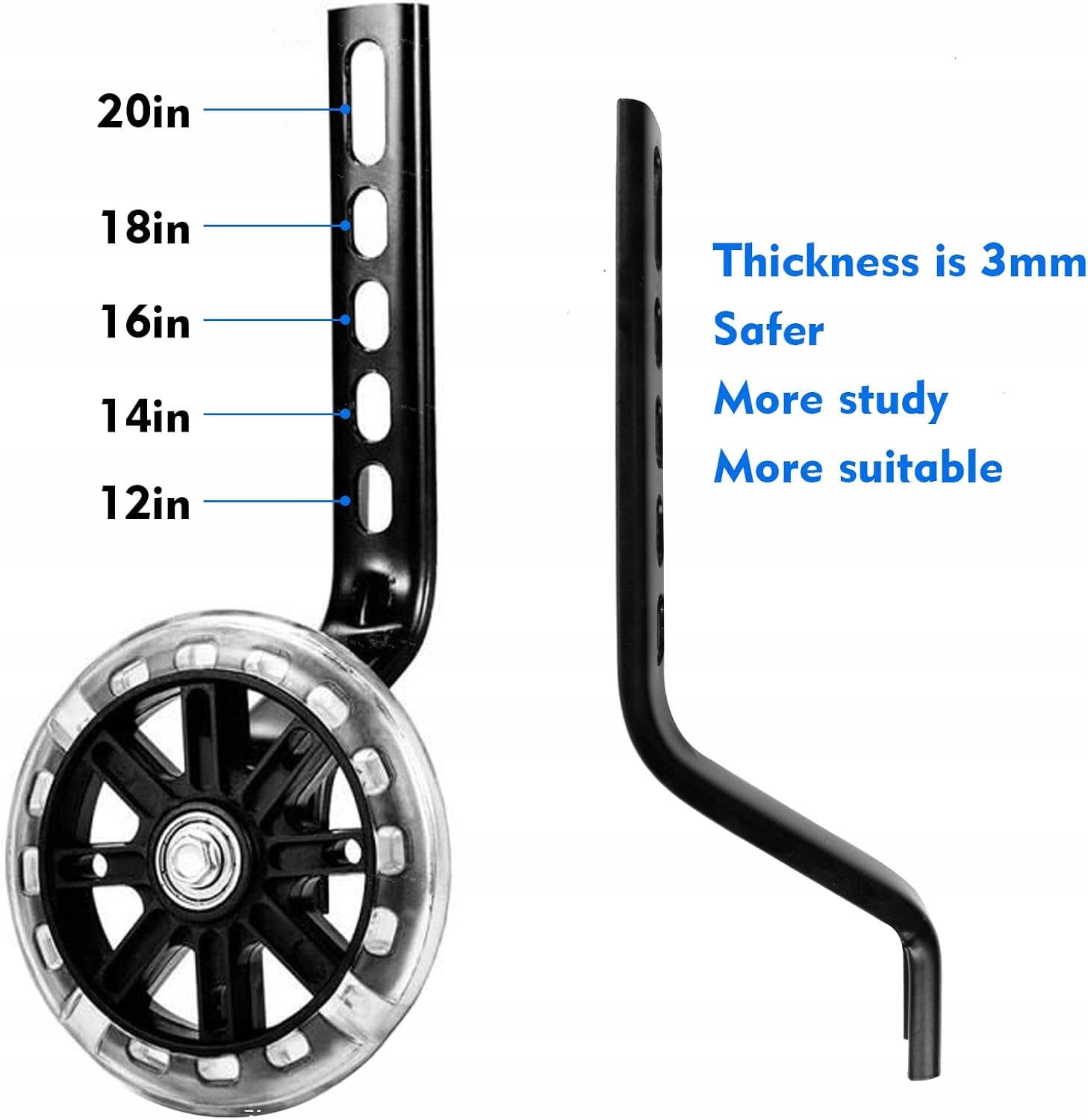 ✅ Опорные колеса соответствуют велосипедам с размером 12-20 дюймов. Концы горизонтальной вилки могут быть легко отрегулированы, что позволяет вам идеально соответствовать колесу с детским велосипедом, независимо от размера.