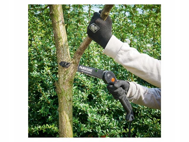 Склачная пила для филиала Parkside Performance - идеальный инструмент для резки дерева в саду, сад в саду и на участке. Стальное карбид -лезвие с длиной 21 см может легко справляться со сухим и свежим деревом, а трикотичные заземляющие зубы обеспечивают гладкие, быстрые порезы. Его самое большое преимущество - это складная конструкция с замком под тремя углами: 140 °, 160 ° и 180 ° - вы будете адаптировать ее к условиям и рабочей позиции. Функция складывания не только повышает безопасность, но и позволяет сохранять пространство при хранении и транспортировке. эргономичная ручка с резиновой оболочкой дает определенную сцепление даже при более длительной работе. Несмотря на компактные размеры, это было связано с ветвями до 10,5 см в диаметре , что ставит его на передний план складных моделей садоводства. По сравнению с классическими садовыми пилами, Parkside предлагает: