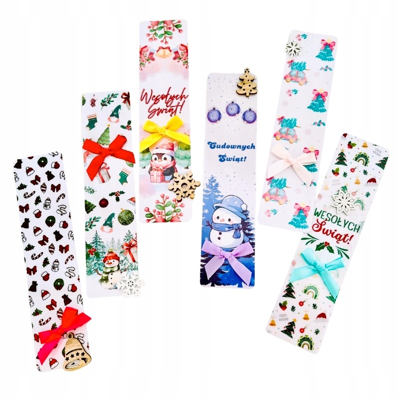 ✅ Каждая с декоративным бантиком и деревянной фигуркой - добавляет шарма и подчеркивает праздничный характер закладки.
