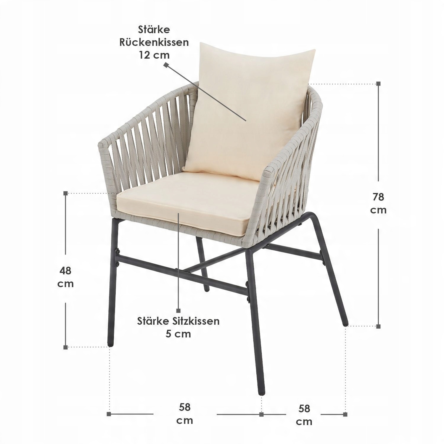 Эластичная веревочная оплетка в сочетании с толстыми подушками сиденья и спинки обеспечивают особенно высокий комфорт сидения на балконных стульях.