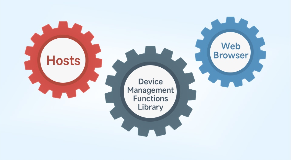 - Возможность настройки через веб-браузер, хост или выделенную библиотеку.