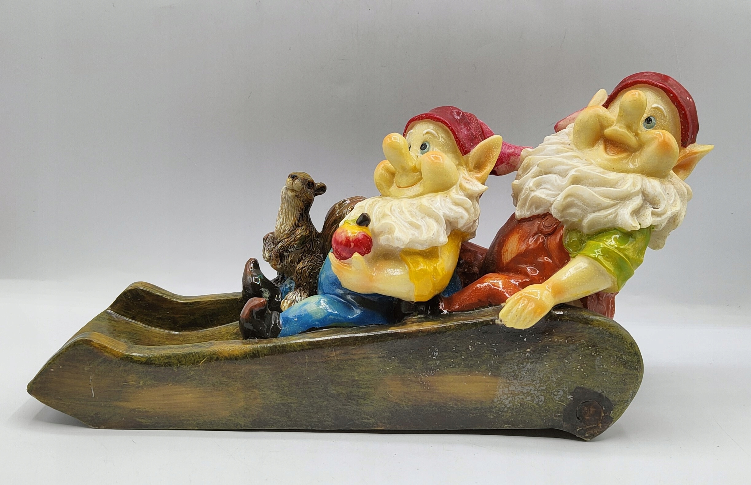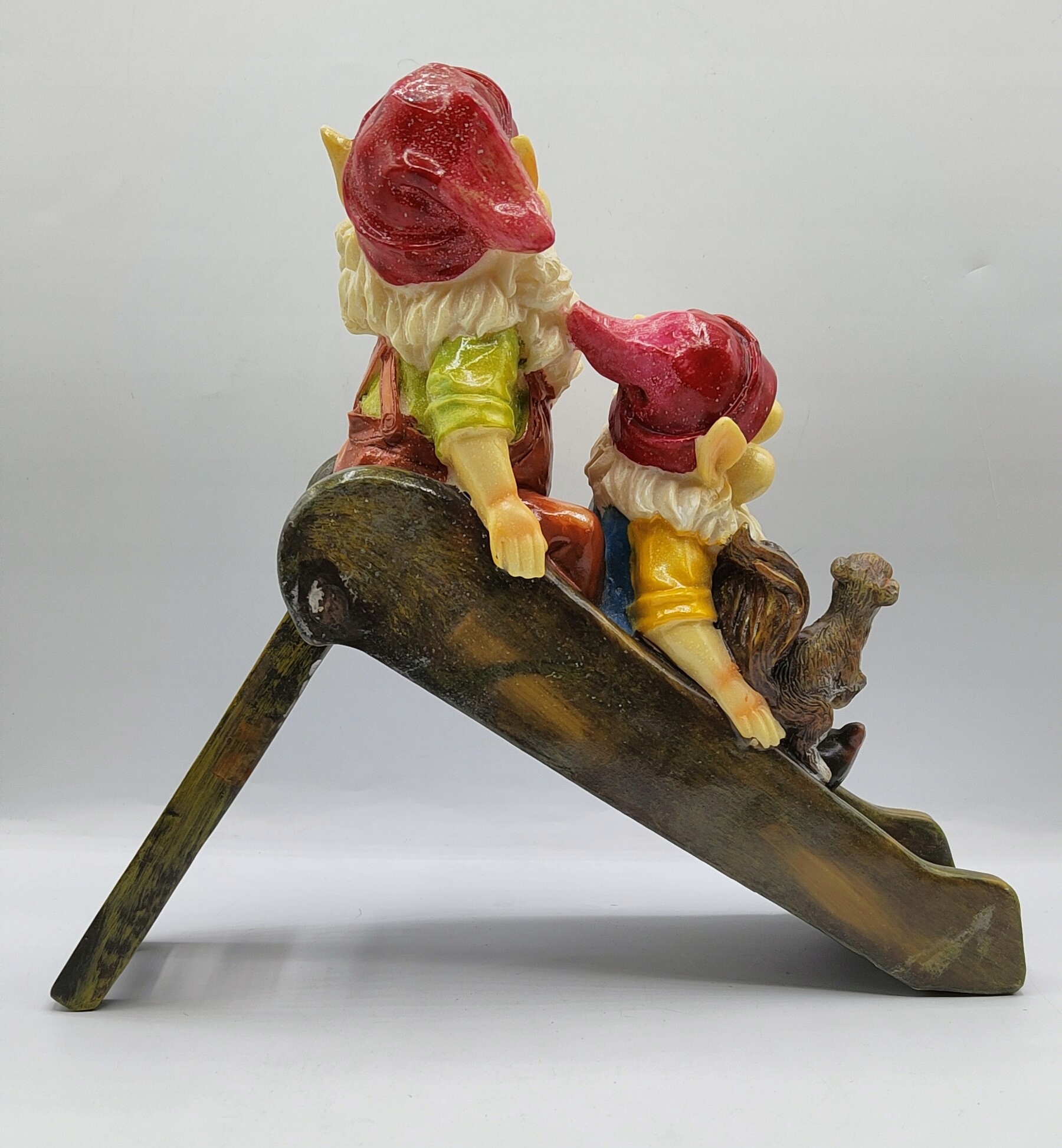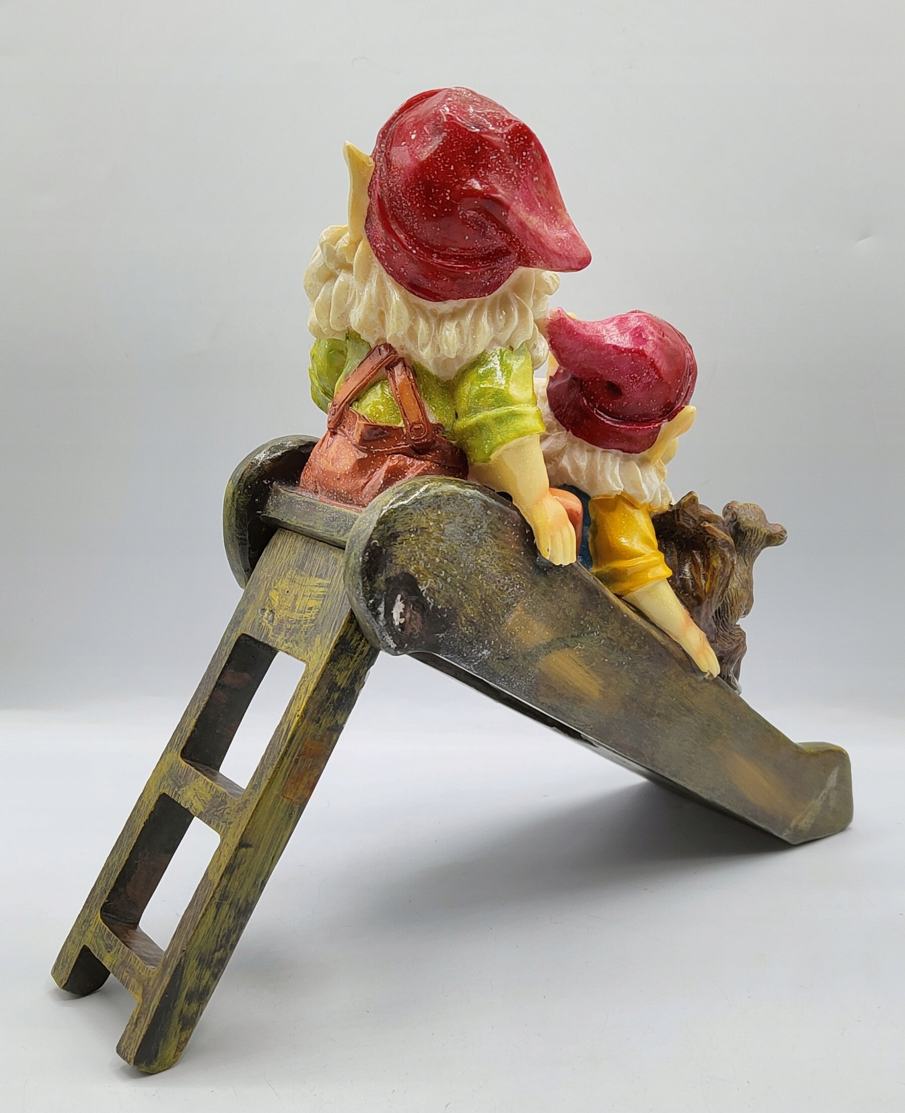 два счастливых карлика с белком, отличная статуэтка, сделанная из смолы, красиво окрашенная. Слайд сложен и также выглядит как сани - отличная статуэтка - я нигде не видел подобного;)