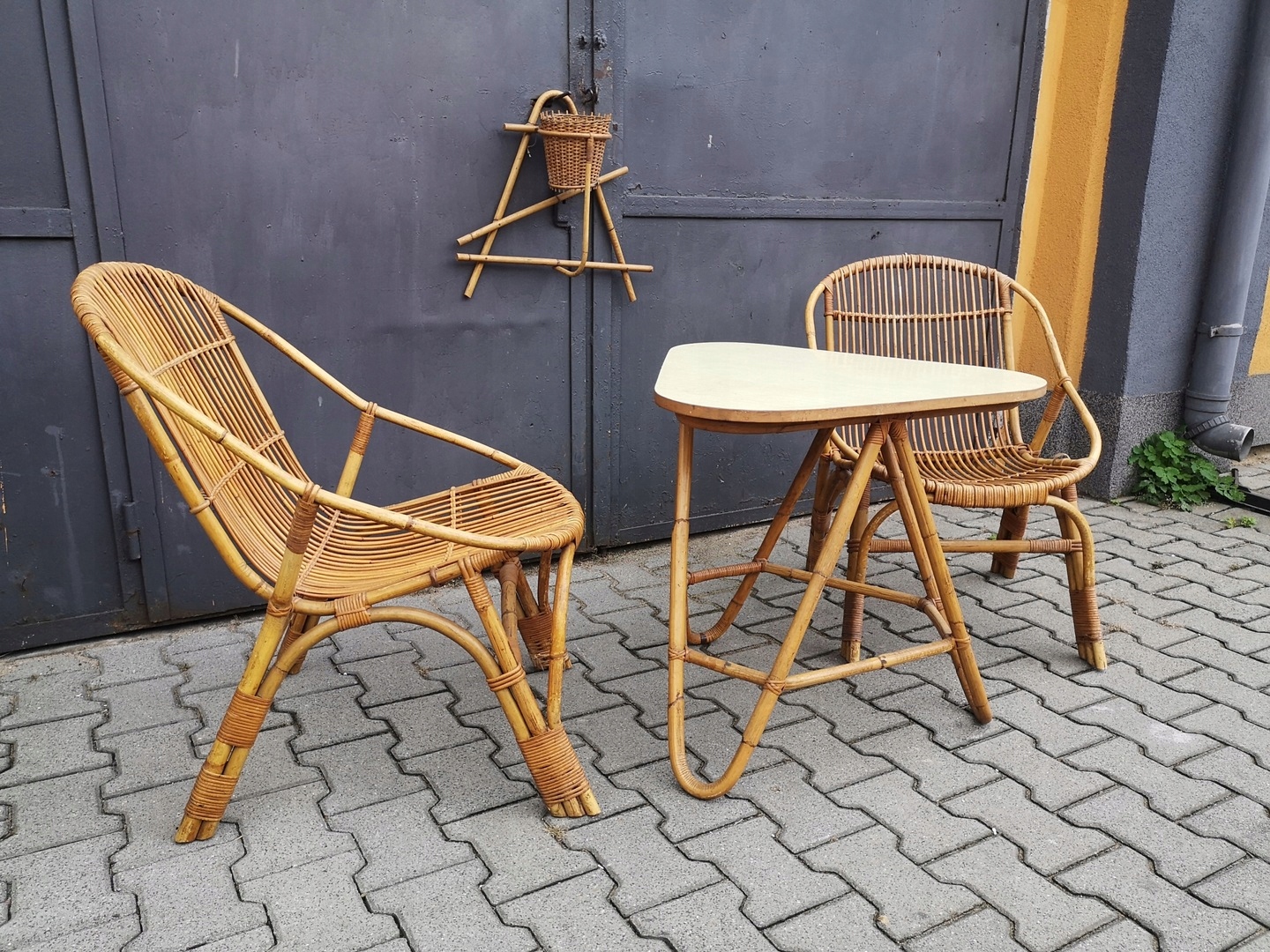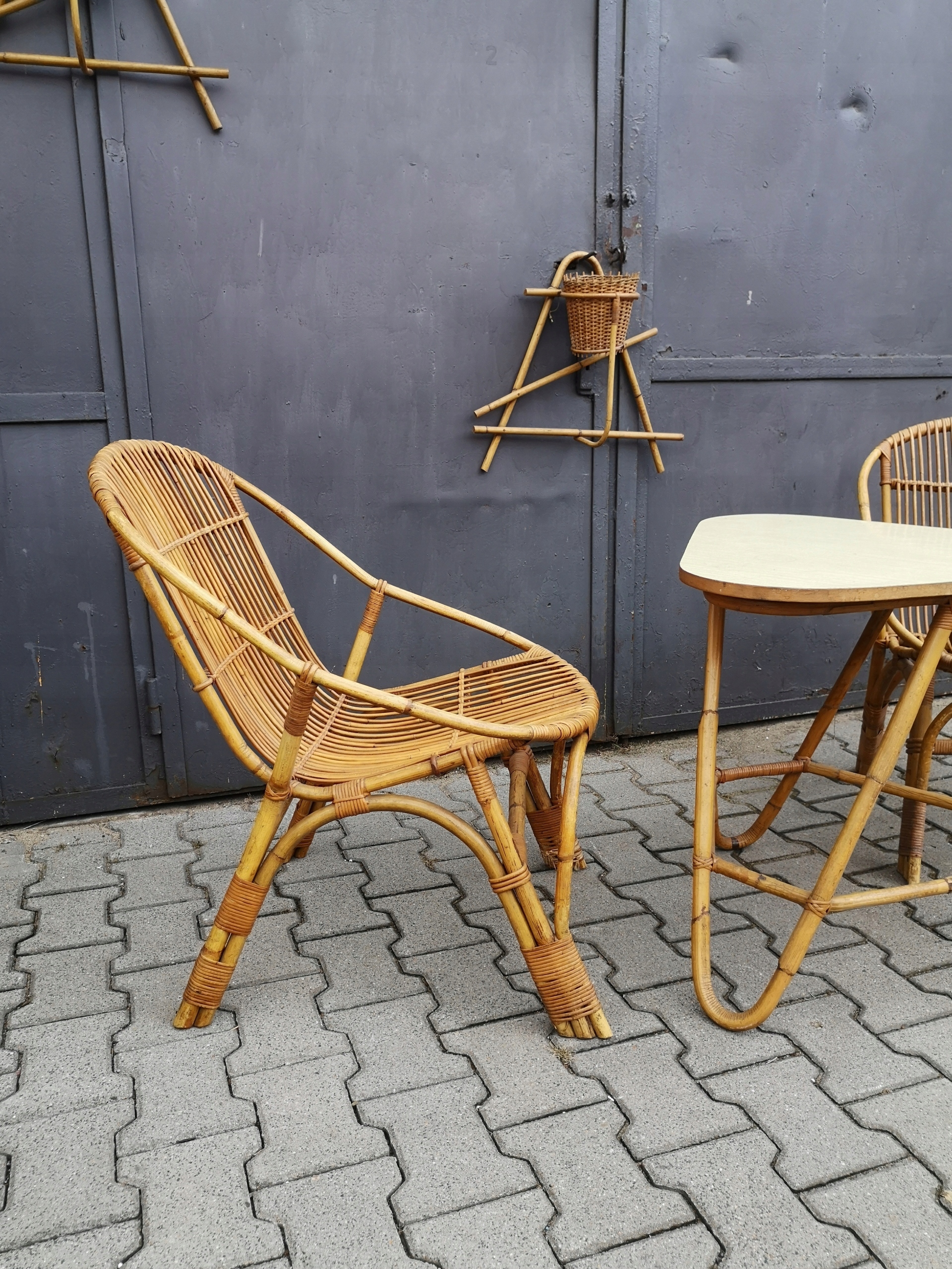 2 кресла и стол + 2 цветочных слоя - бамбук дизайн '60 Prl Vintage Midce
