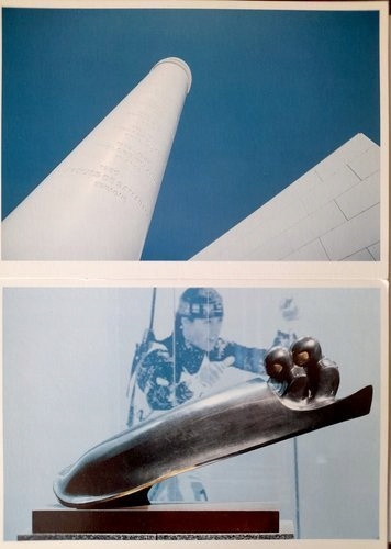 Описание: Две открытки, выпущенные Олимпийским музеем в Лозанне, на которой в Олимпийском парке есть фотография колонны с именами всех президентов Международного олимпийского комитета и фотография бобслистской дрожания. (высота) 15 (ширина)
