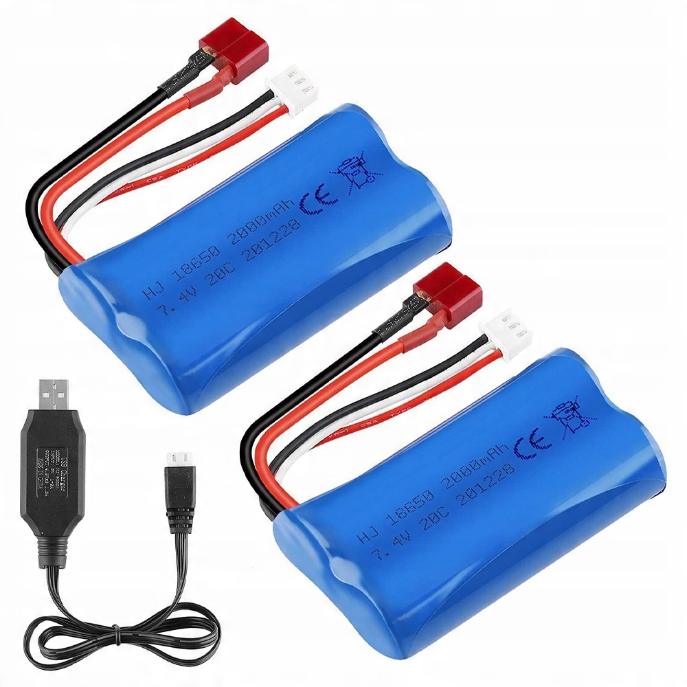 2 ЛИТИЙ-ИОННЫХ АККУМУЛЯТОРА 7,4 В 2000 МАЧ С Т-ПЛЕТОМ USB-ЗАРЯДНОЕ УСТРОЙСТВО ДЛЯ РУ