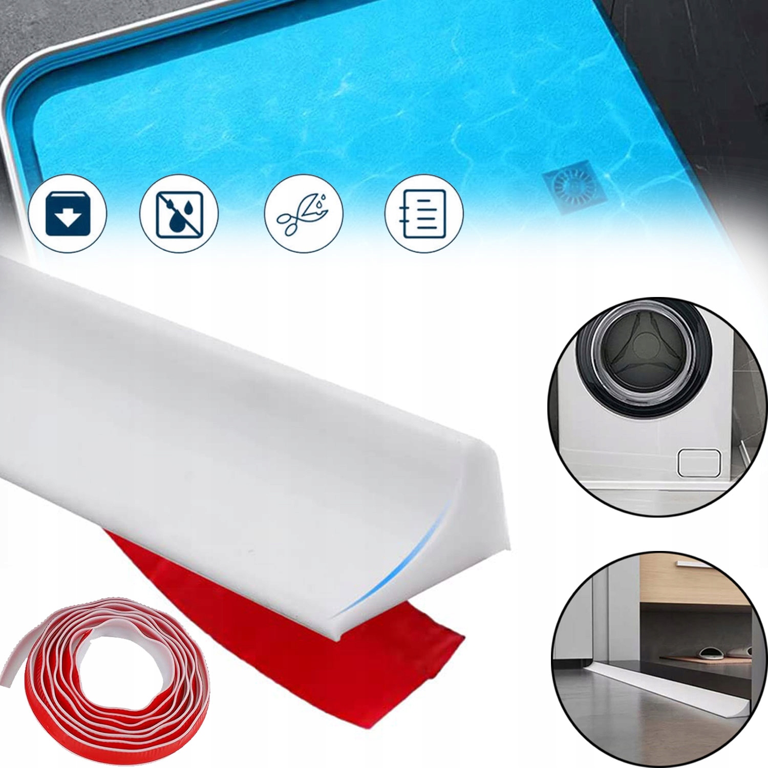 💧💧💧【 широкое использование】 его можно использовать на полах в душе, бассейнах, кухонных раковинах, у двери ванных комнат, на краях ванны, вокруг стиральных машин или туалетов, создавая водонепроницаемый барьера, эффективно блокируя поток воды, обеспечивая разделение сухих и влажных зон и влажных зон. Защита дома от влаги! В углах мы рекомендуем разрезать под углом 45 градусов и соединяться под углом 90 градусов, чтобы соединение было более долговечным и прочным.