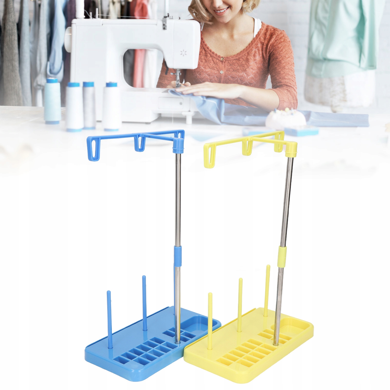 4. Прочный материал: эта подставка для ниток с 3 катушками изготовлена из высококачественного пластика и алюминия, она безопасна, экологична и долговечна.