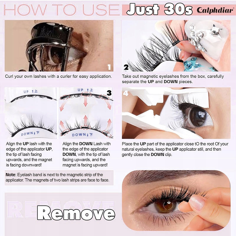 " натуральный тонкий пушистый магнитные ресницы полностью простираются от корня до ресниц длины, благодаря тому, что ресницы выглядят как расширенные. и портативные, подходящие для повседневного ношения, путешествий или вечеринок! Начиная с кончиков, найдите небольшой магнит на ресниках и поместите зажим на верхнюю часть ресниц, недалеко от основания ресниц, а затем осторожно нажмите, чтобы закрыть ресницы и поддаться верхним и нижним ресницам, чтобы закончить ношение!