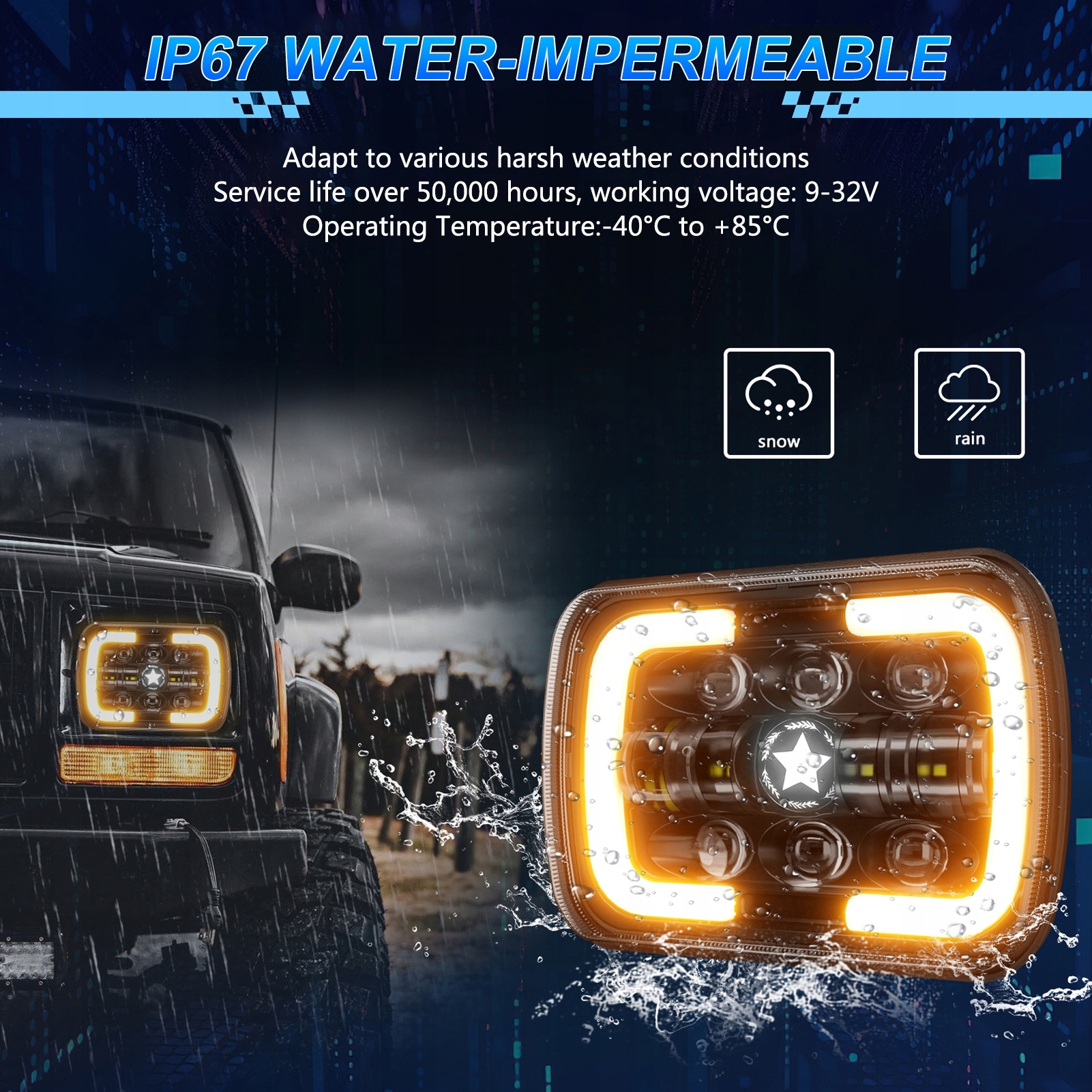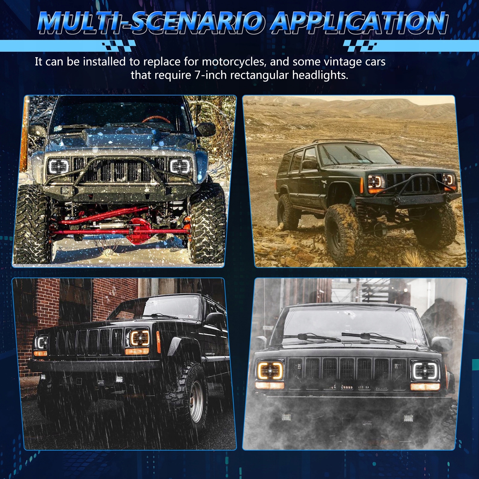 3. Повышенная видимость и безопасность: оснащены светодиодными чипами премиум-класса, 7-дюймовые прямоугольные фары обеспечивают более яркое освещение, чем обычные фары, обеспечивая превосходную видимость и безопасность во время ночных дисков, туманные условия или дождливая погода.
