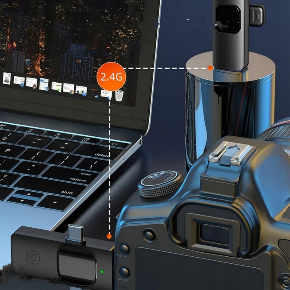 Двойной беспроводной микрофон имеет встроенную батарею большой емкости, которая превышает 7 часов. Поддерживает зарядку во время записи, а кабель зарядки C позволяет одновременно заряжать приемник и мобильный телефон.