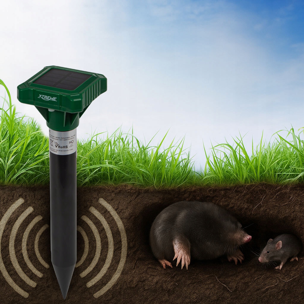 Продукт дает низкочастотные волны, которые сдерживают родинки, полевые, змеи, бирюзовые и другие наземные или подземные вредители. Они наносят много ущерба, они разрушают газоны, скидки или пахотные поля, , уничтожая корни растения.